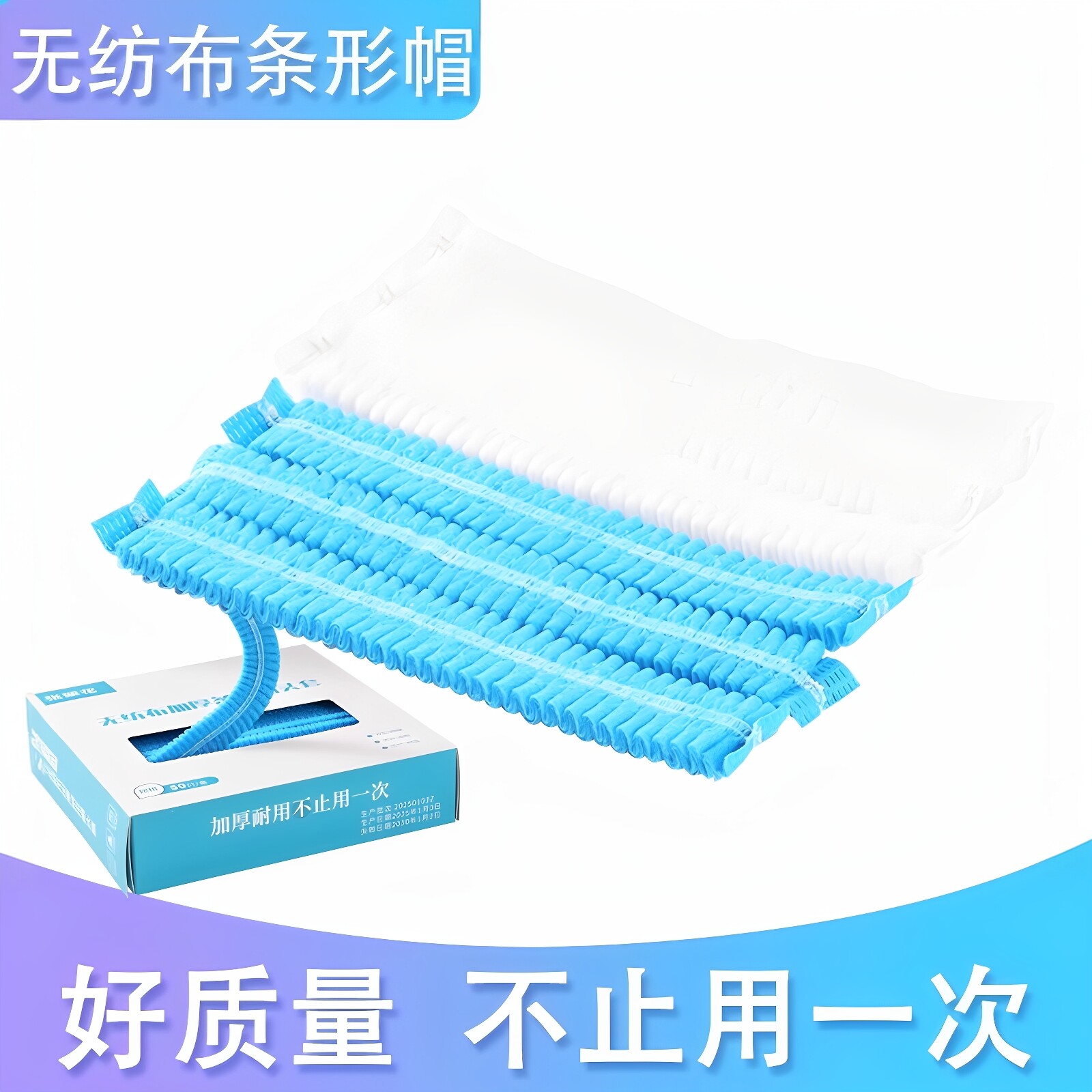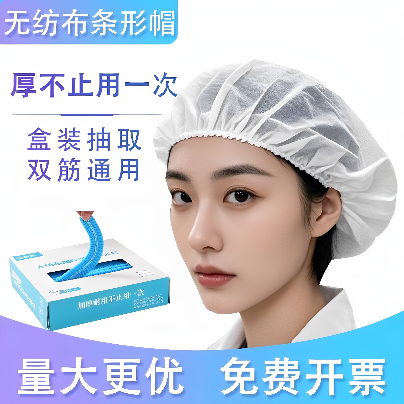 盒装加厚一次性无纺布帽子头套批发防尘厨师网帽工作帽劳保条形帽