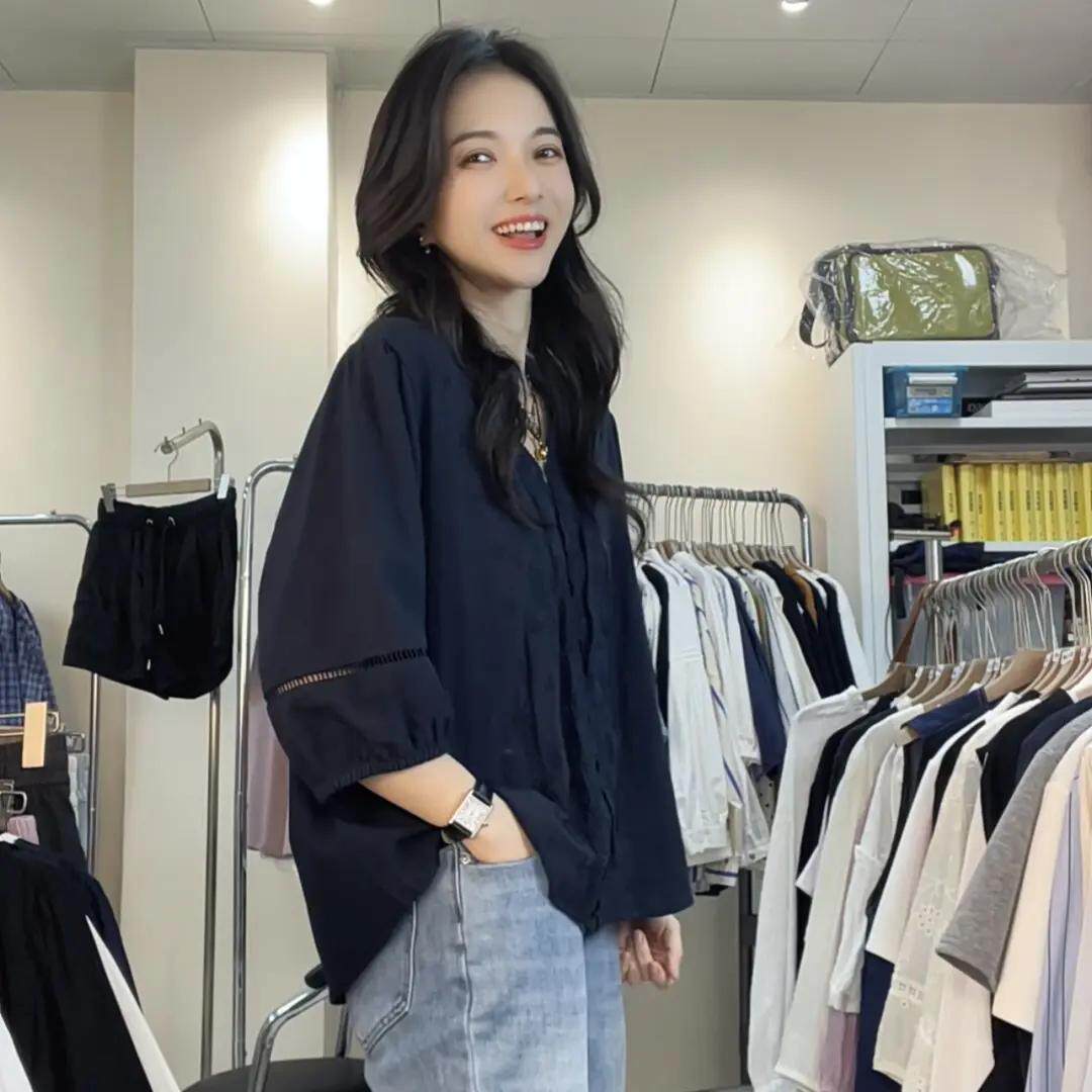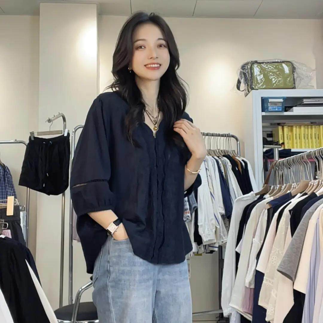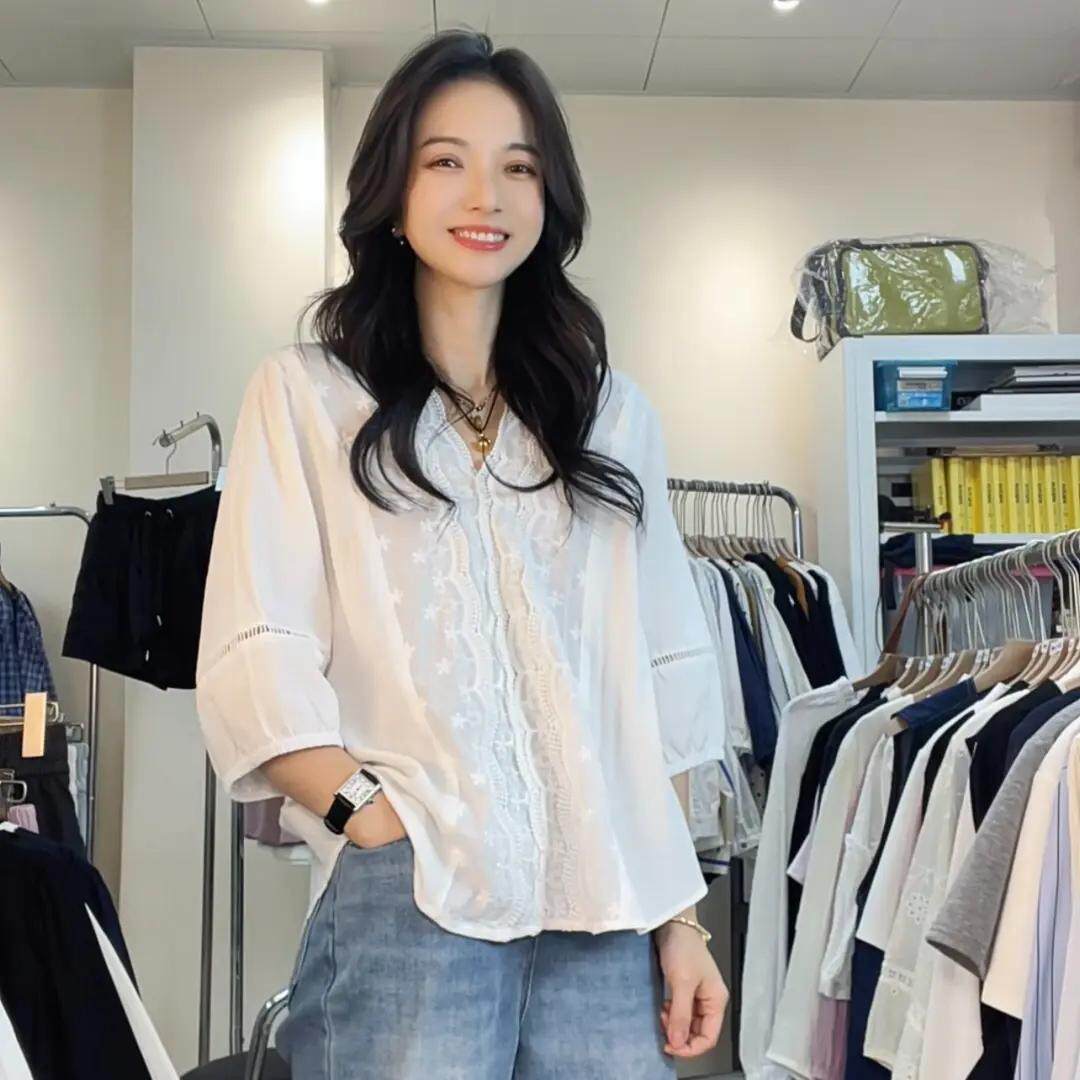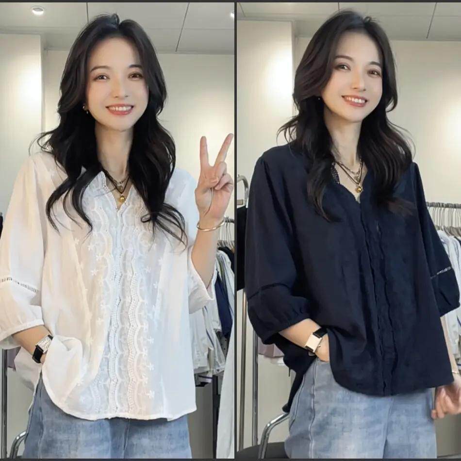 2026新款减龄气质花边加大码衬衫五分袖刺绣衬衣中袖春装女款上衣