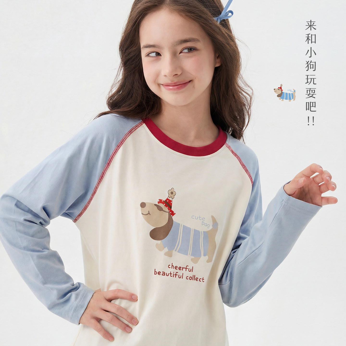 女童长袖T恤春季新款儿童纯棉打底衫大童宽松青少年洋气上衣童装