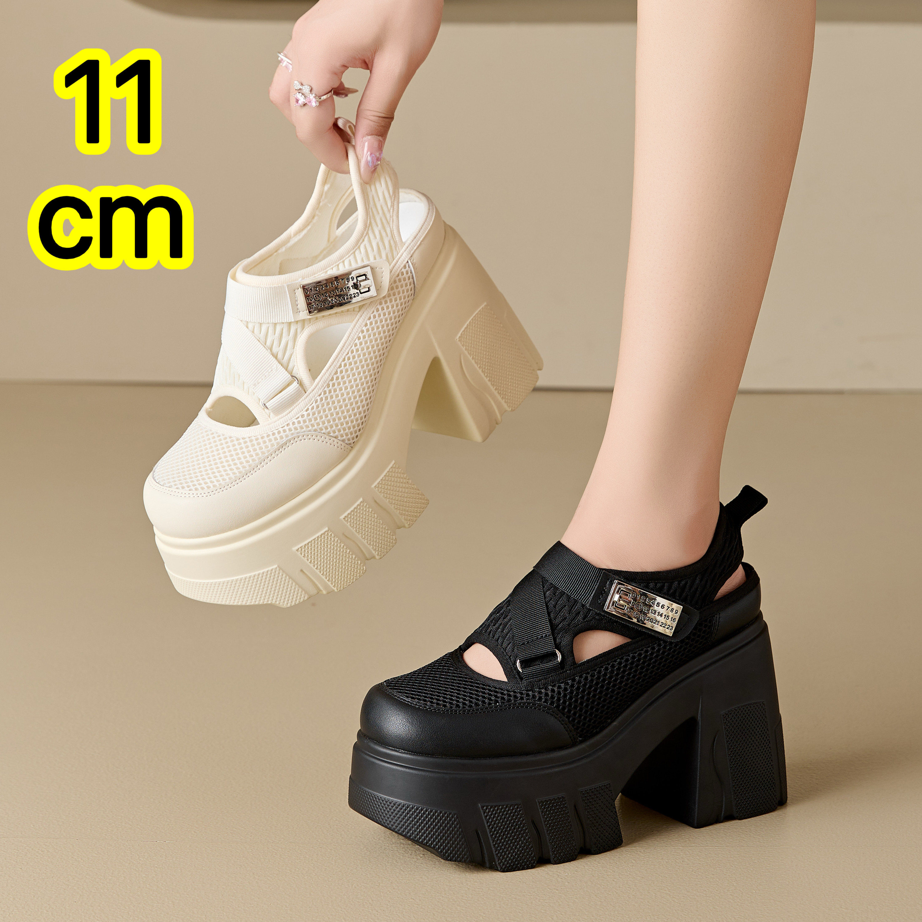 11cm厚底内增高凉鞋女2026新款小个子松糕鞋休闲玛丽珍小皮鞋包头