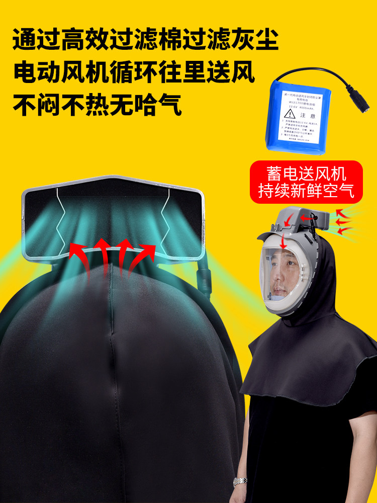 防尘面罩全脸一体款工业级防工业粉尘收割机电动送风打磨帽子护颈