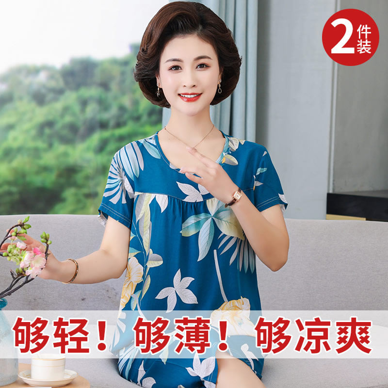 棉绸睡衣女款2026新款夏季可外穿冰丝妈妈穿的大码上衣短袖家居服