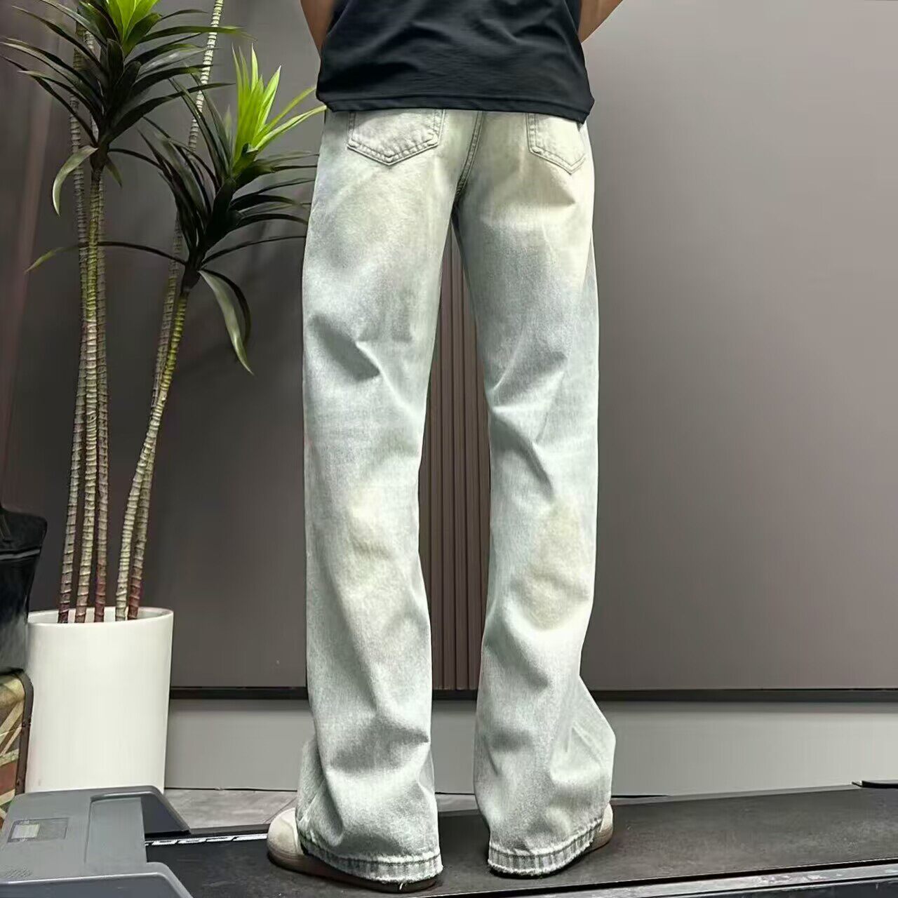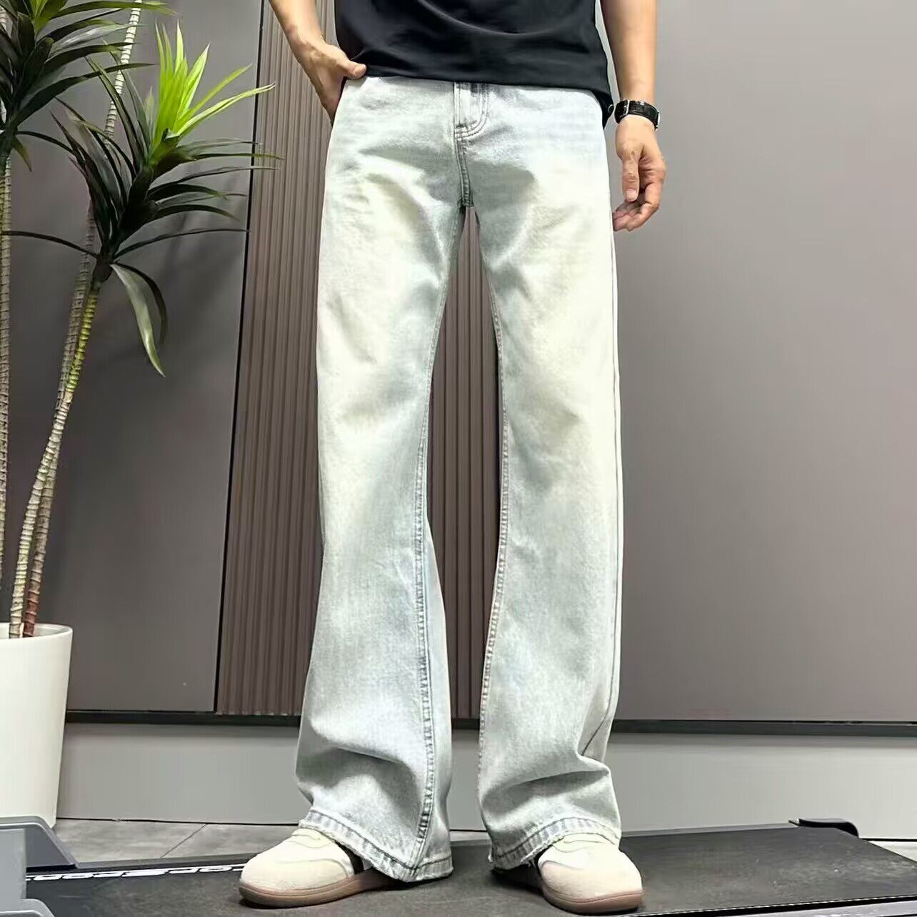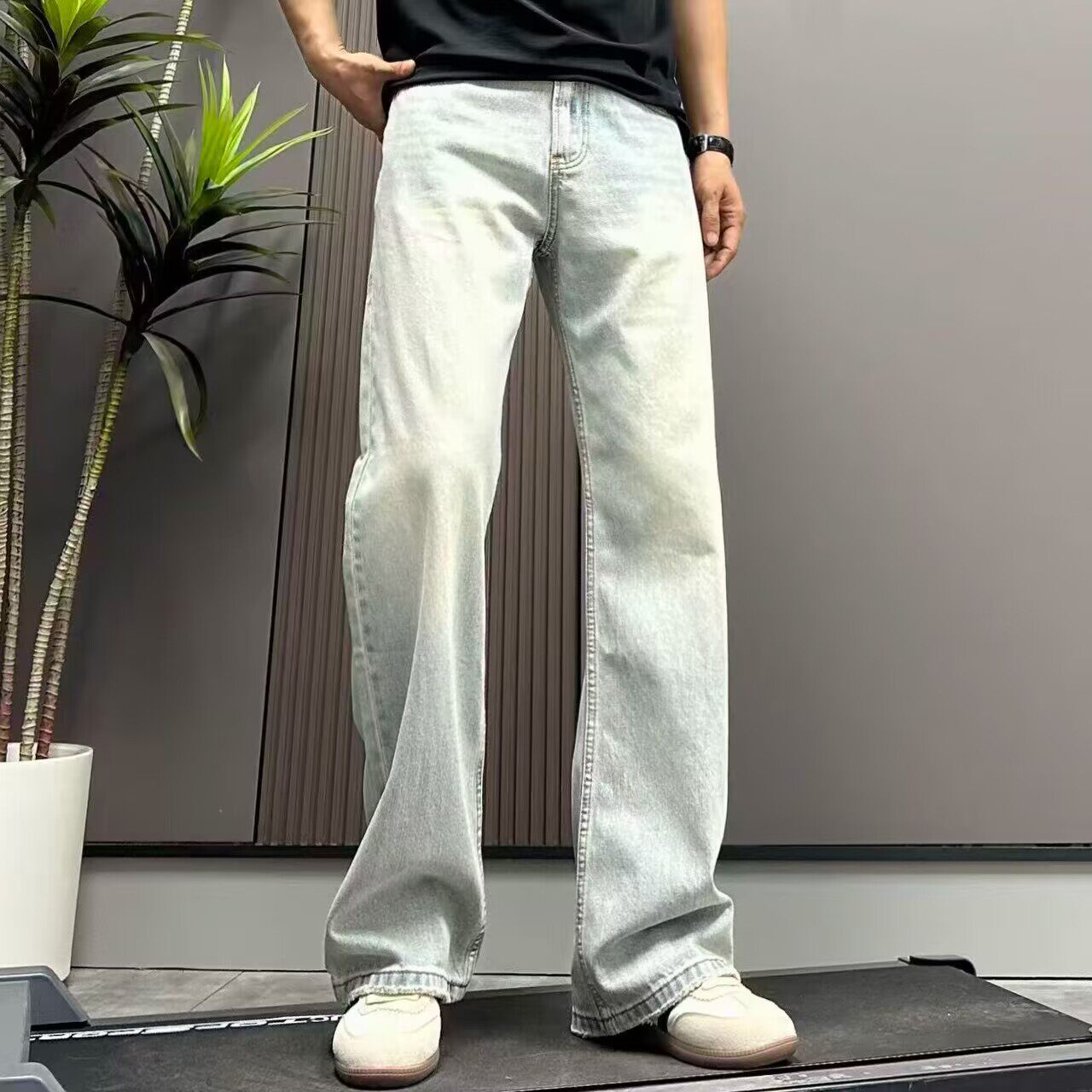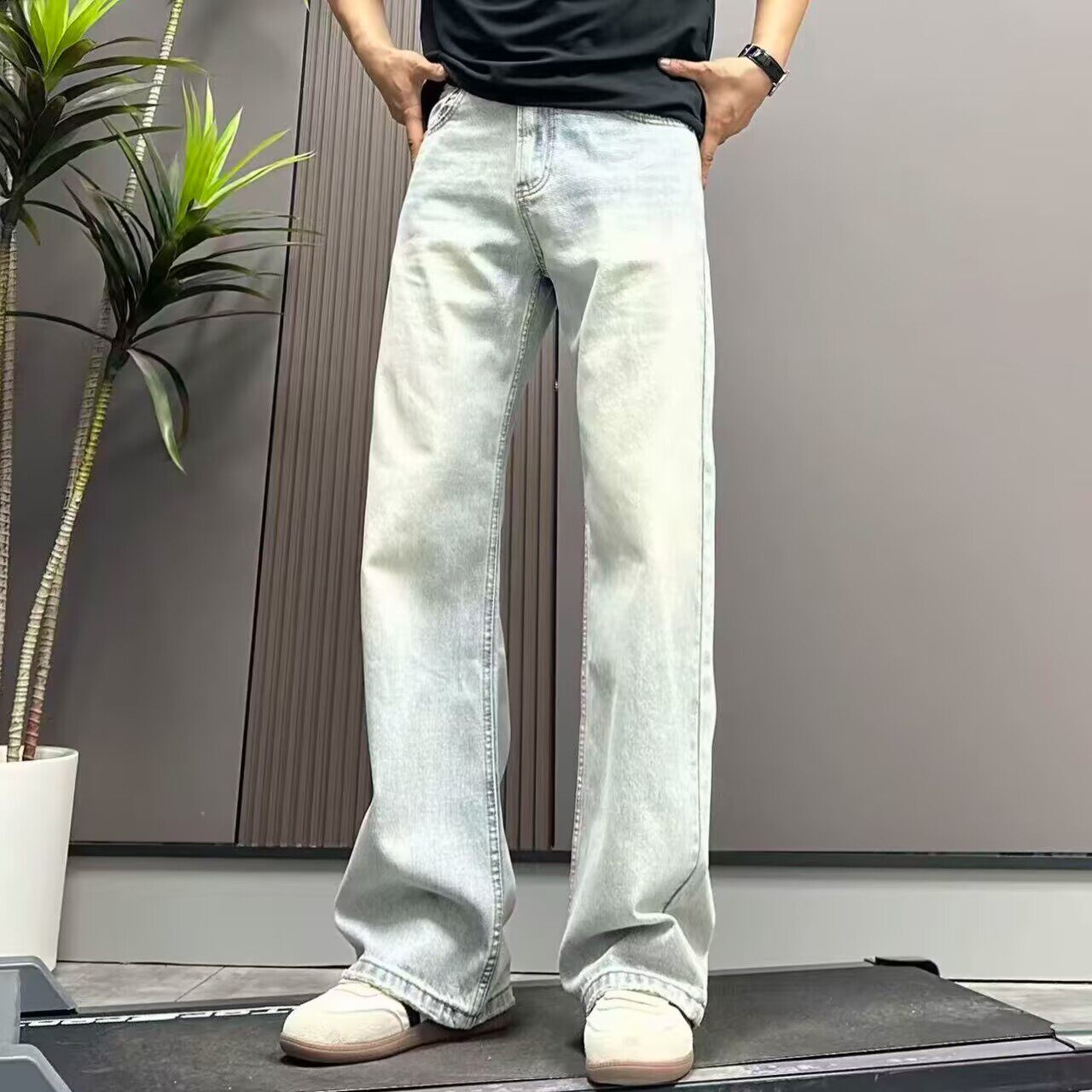 高端水洗浅蓝色牛仔裤男宽松直筒阔腿裤2026春夏季新款做旧长裤子
