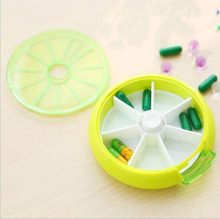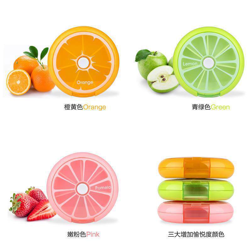水果药盒 圆形一周七格旋转塑料小药盒7天便携式收纳盒可印制logo