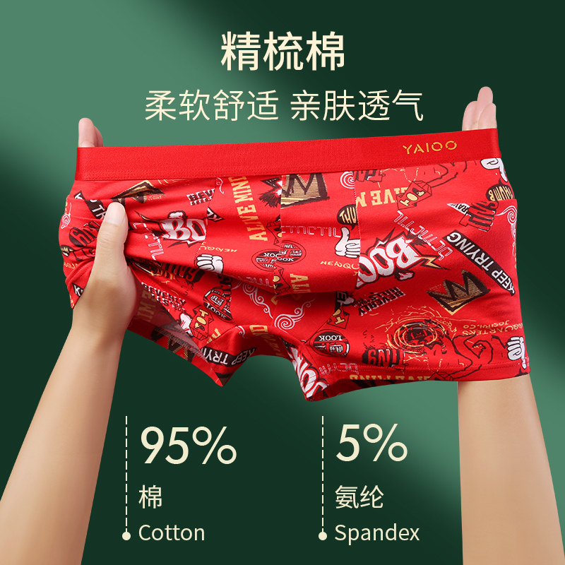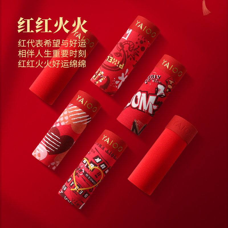 雅鹿本命年男士内裤纯棉男款红色四角平角短裤男生2026属马年礼物