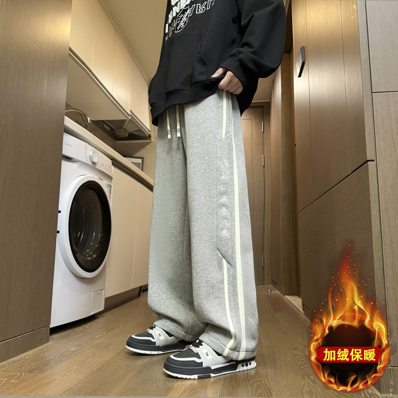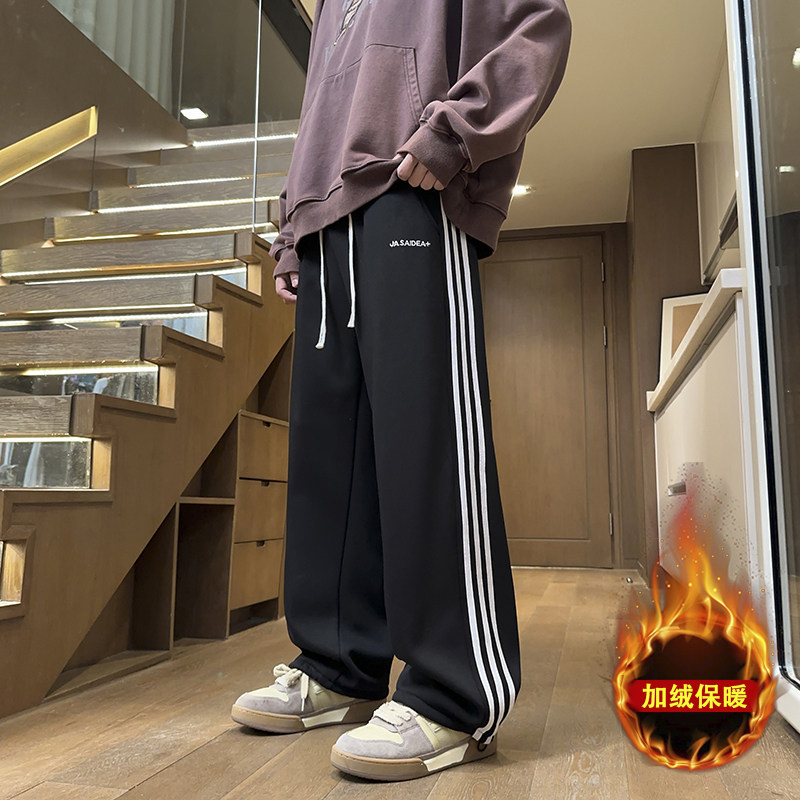 初高中学生纯棉直筒长裤子男孩秋冬装加绒加厚休闲裤大童运动卫裤