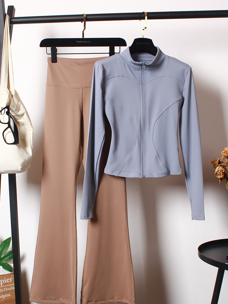 瑜伽服套装女秋冬季长袖弹力速干喇叭裤跑步训练修身显瘦健身外套