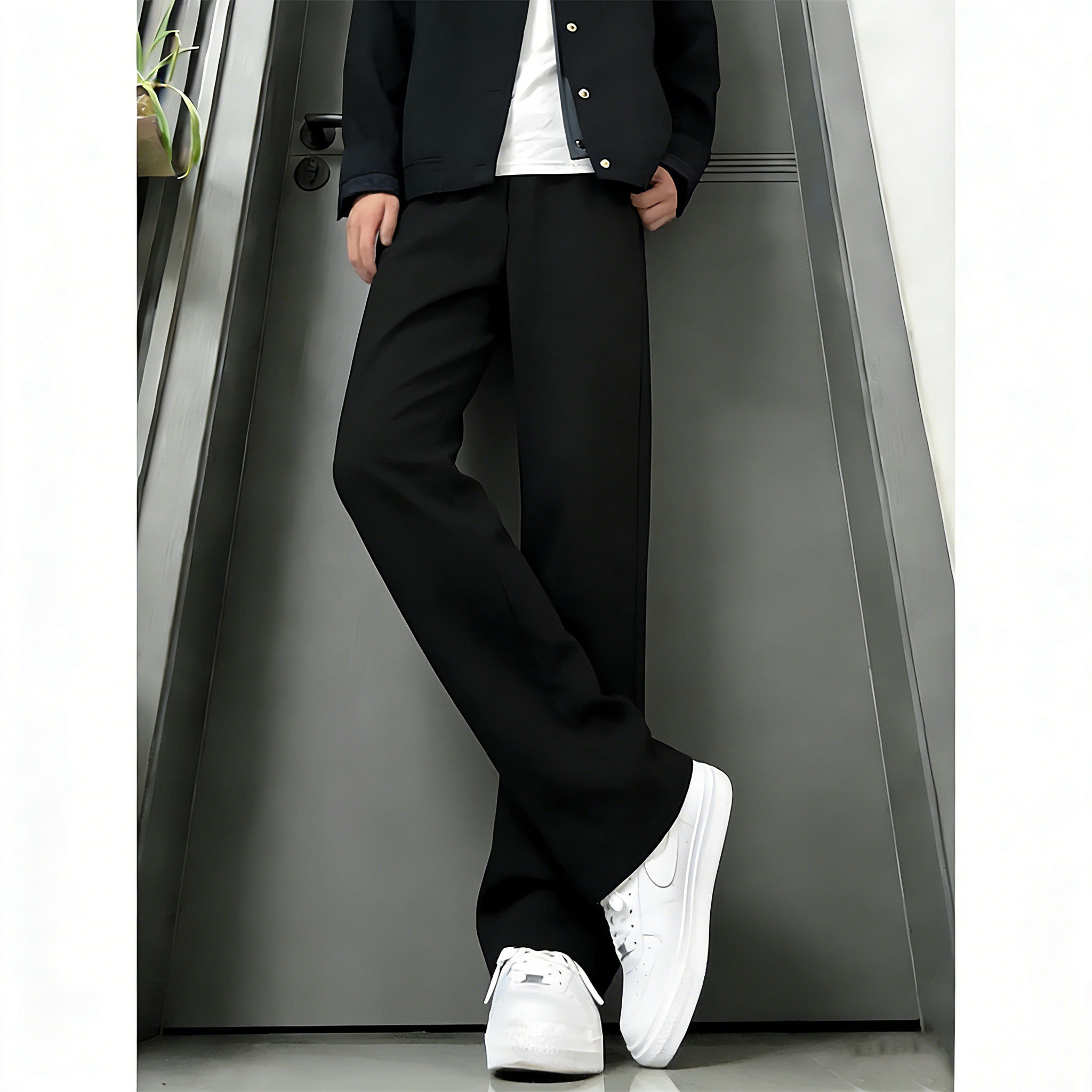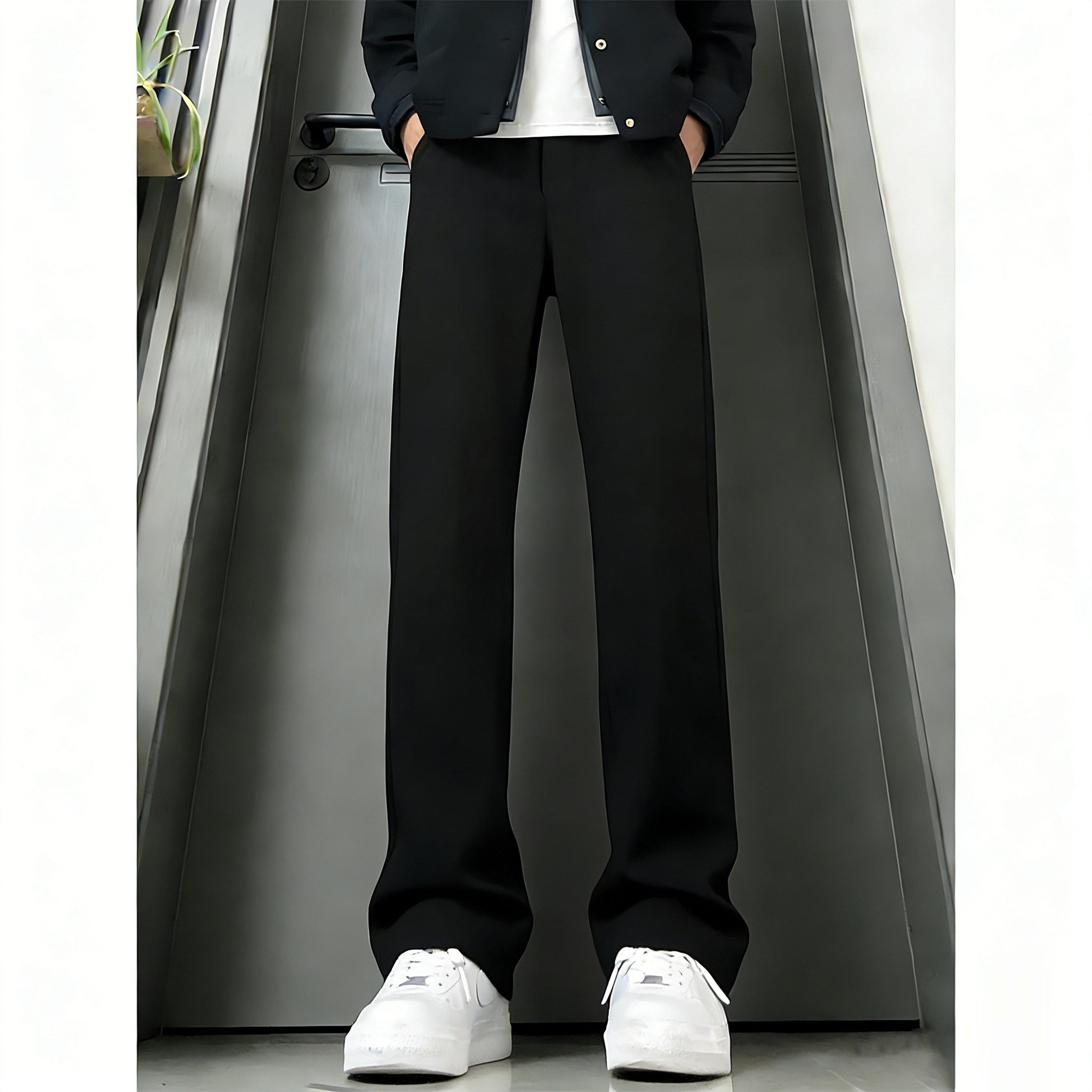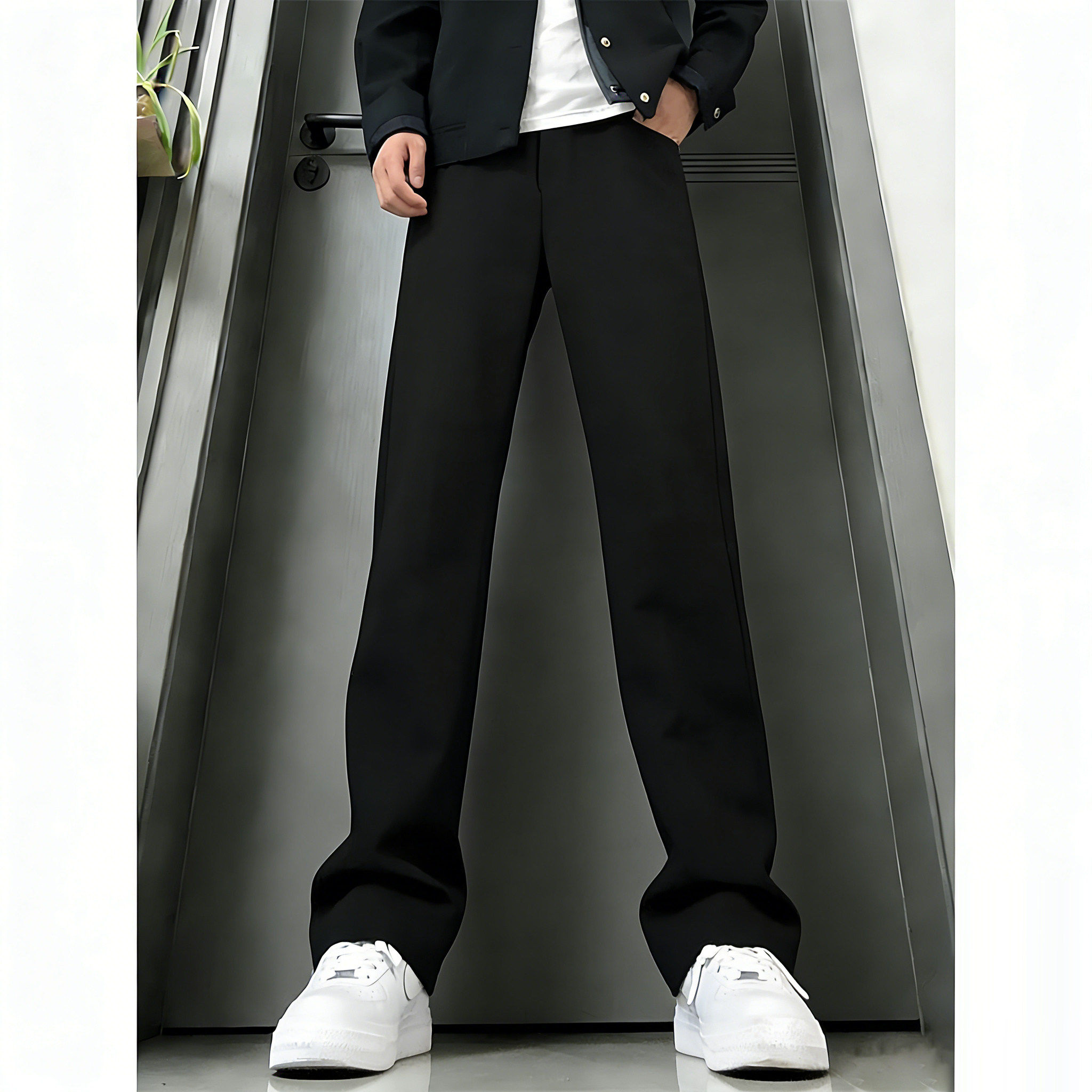 黑色微喇休闲西裤男款秋冬青少年帅气加绒裤子修身显瘦直筒西装裤