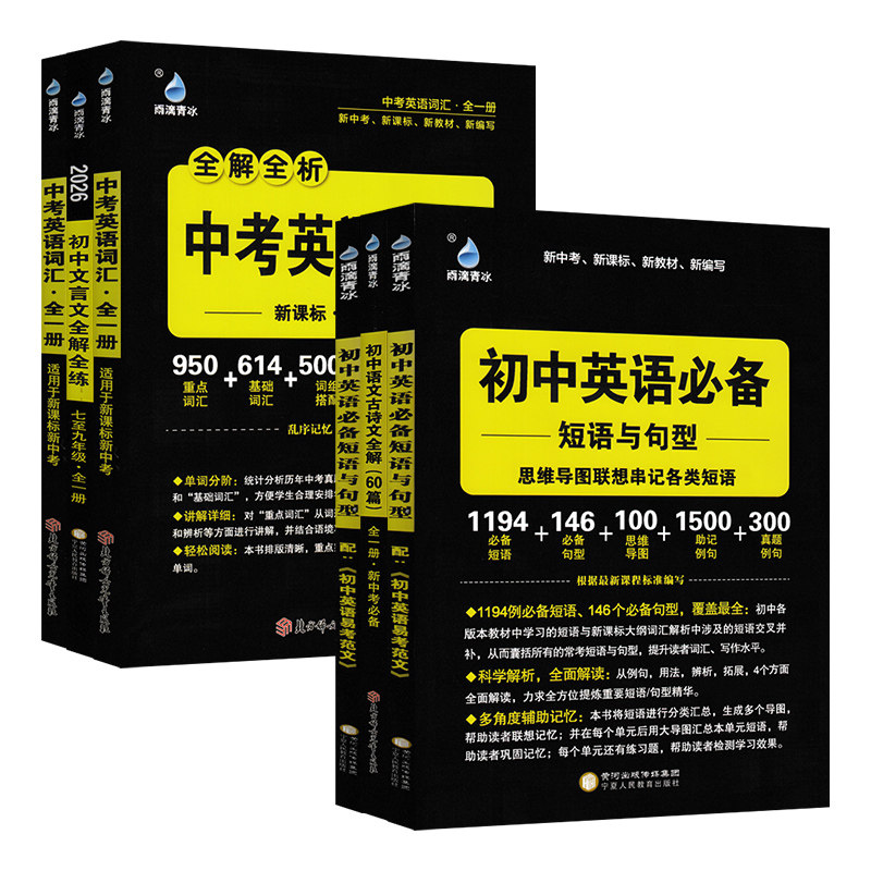 2026版雨滴初中语文古诗文全解60篇语文文言文全解全练英语必备短语与句型中考英语词汇全解全析知识积累专项训练历年真题全面解读