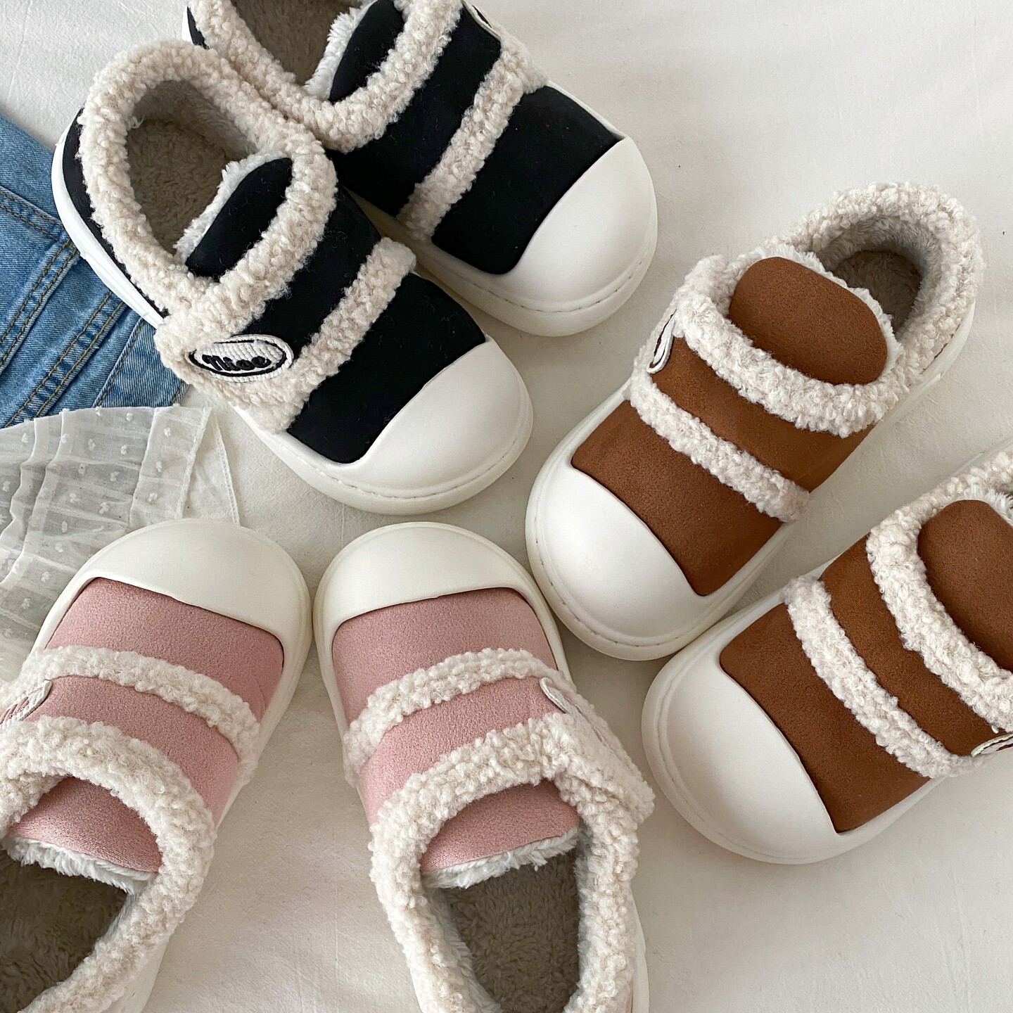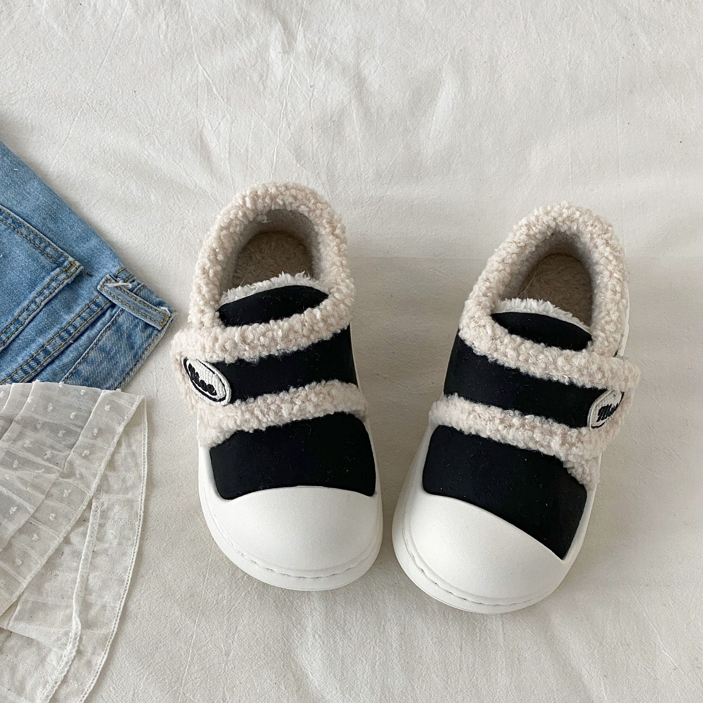 喜叔丑萌厚底魔术贴棉鞋女款冬季外穿保暖加绒包跟棉拖鞋毛毛鞋子