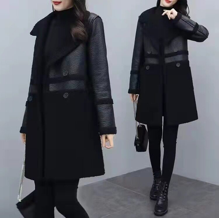 巨好看2025冬季新款加绒加厚宽松PU皮衣外套女中长款胖mm大码风衣