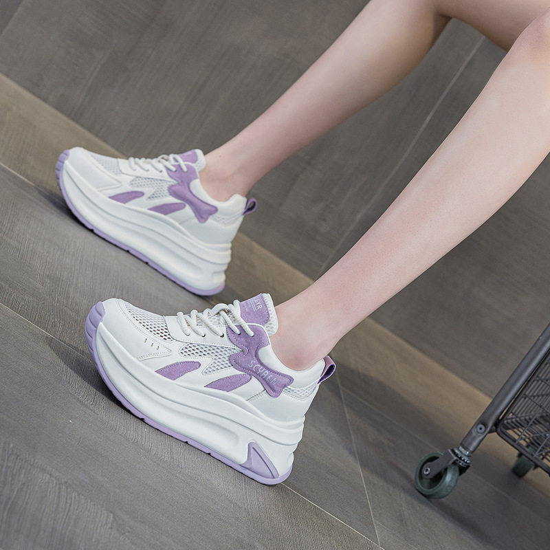 内增高女鞋小个子夏天穿的鞋子2025新款小白鞋网面透气休闲运动鞋