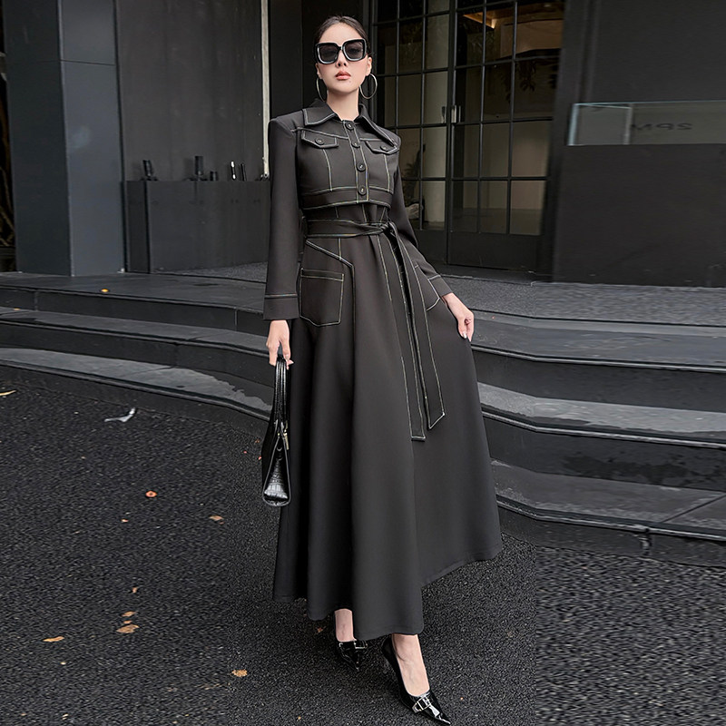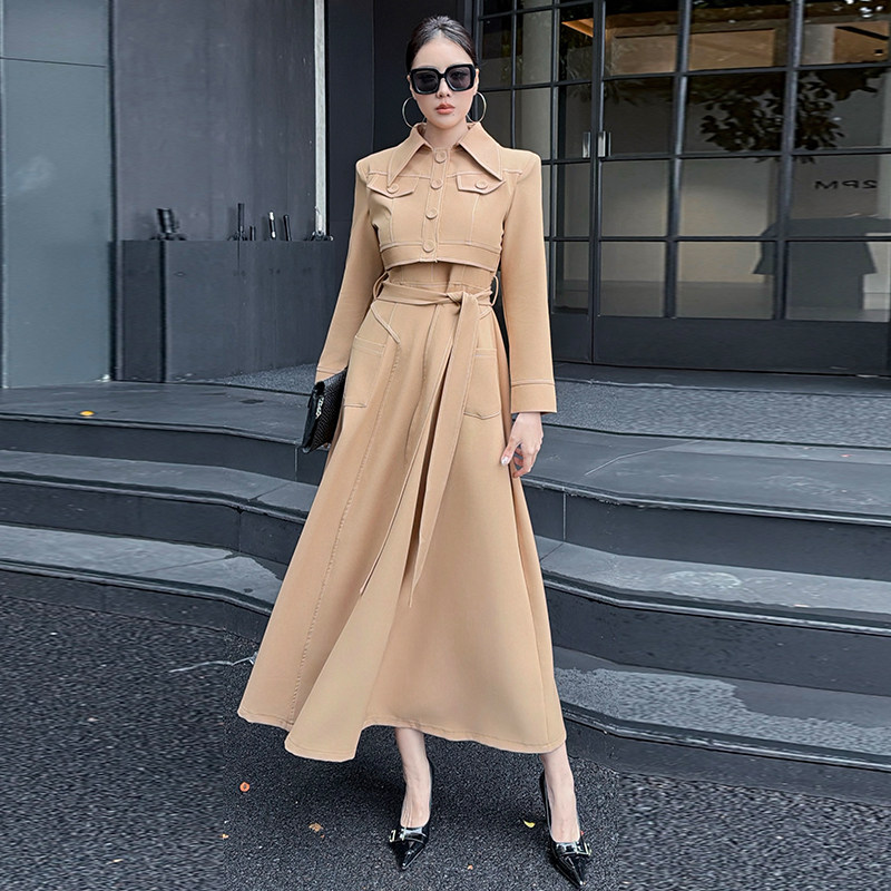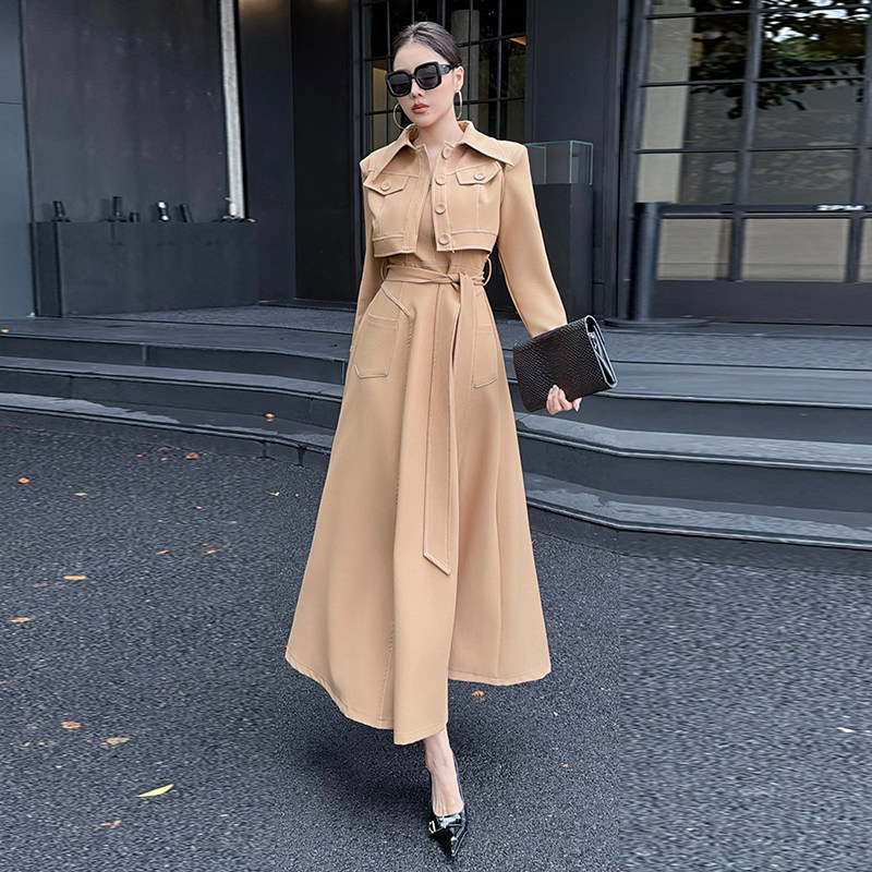 长袖短款修身小西装搭配高腰气质显瘦大摆秋冬连衣裙长款两件套裙