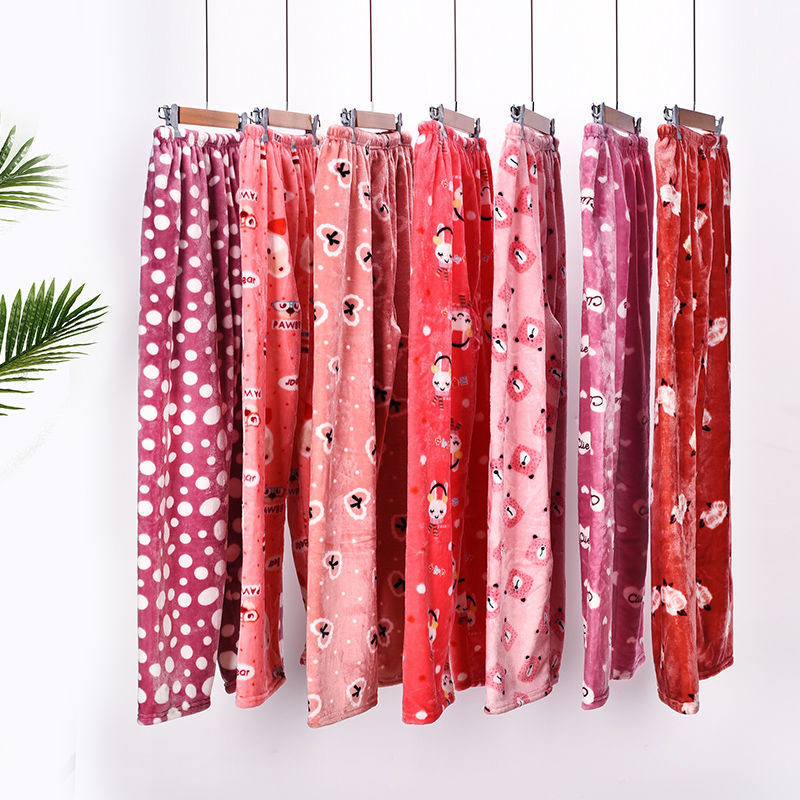法兰绒睡裤男女秋冬大码加绒加厚宽松阔腿长款休闲可外穿家居裤子