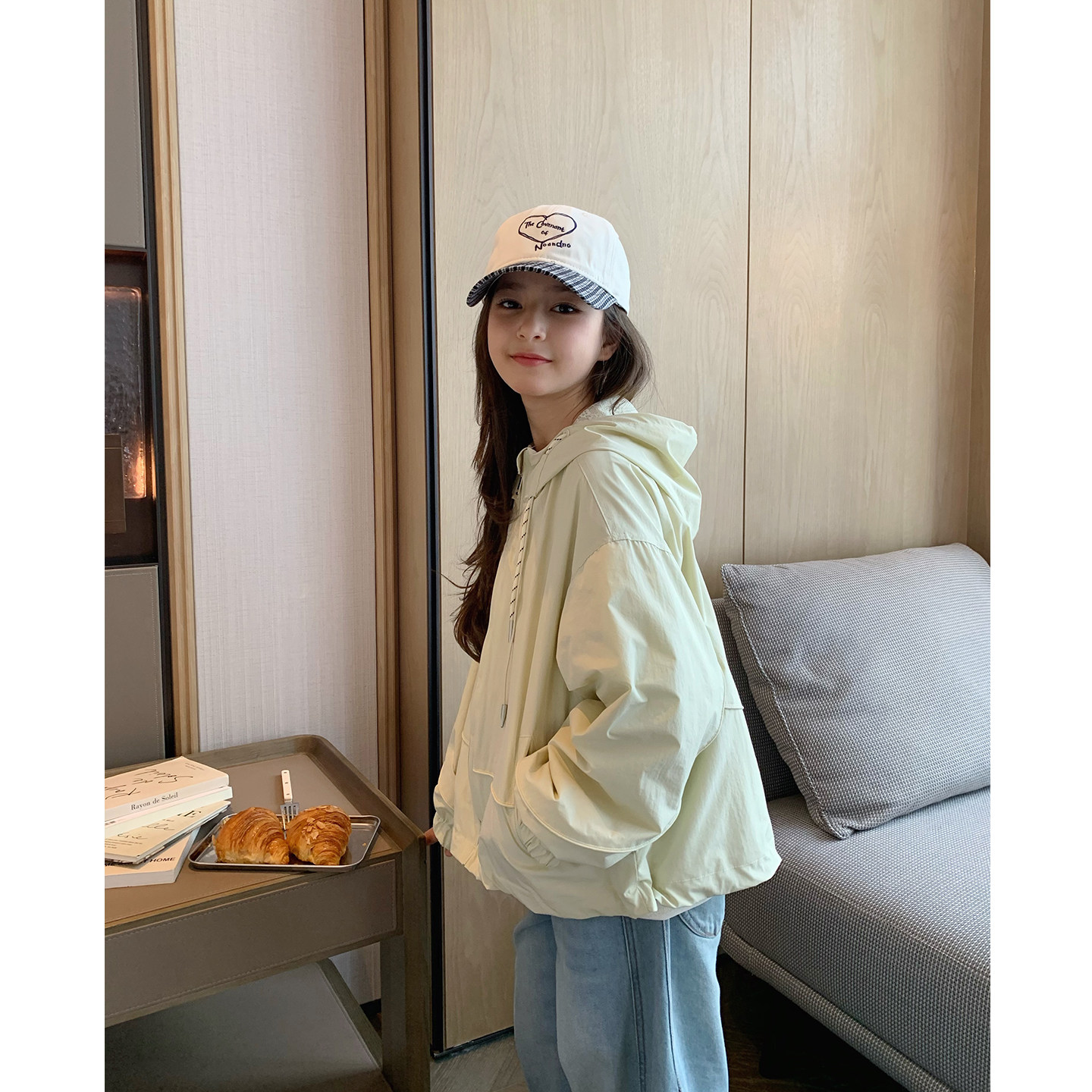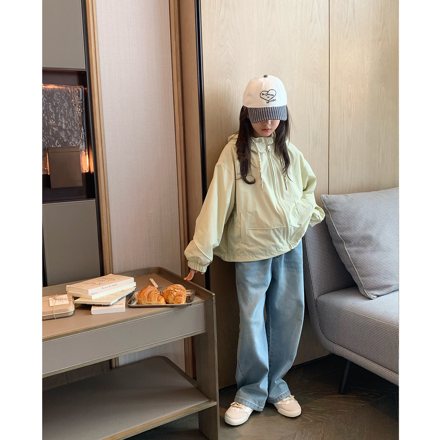 女大童蕾丝拼接连帽外套2026春装新款青少年韩版冲锋衣初中生开衫
