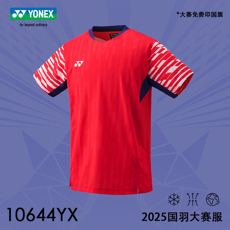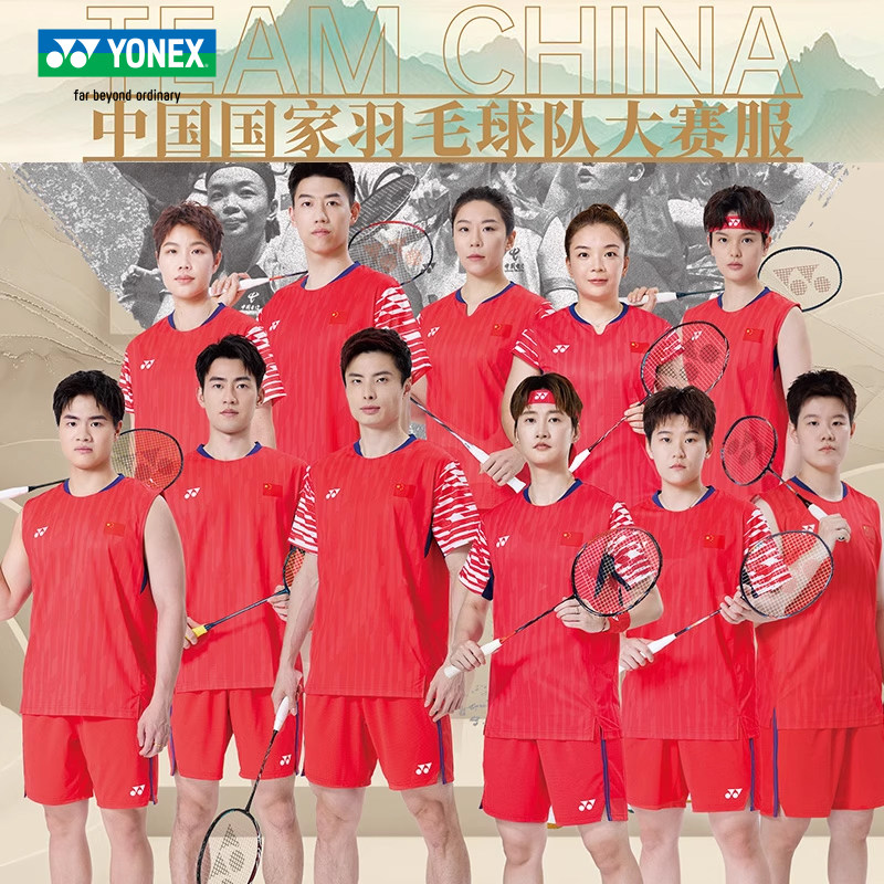 尤尼克斯正品25新品羽毛球服国家队大赛服男女VC速干透气运动短袖