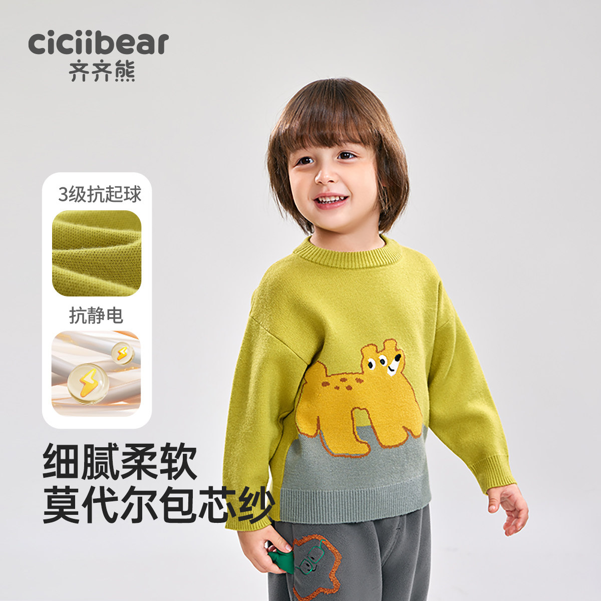[毛衣清仓]齐齐熊宝宝针织衫春秋款男童开衫儿童外套春装女童上衣