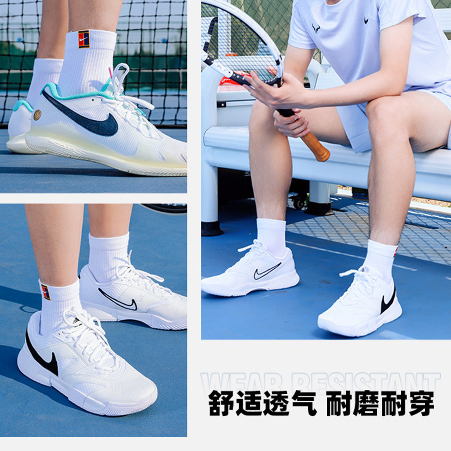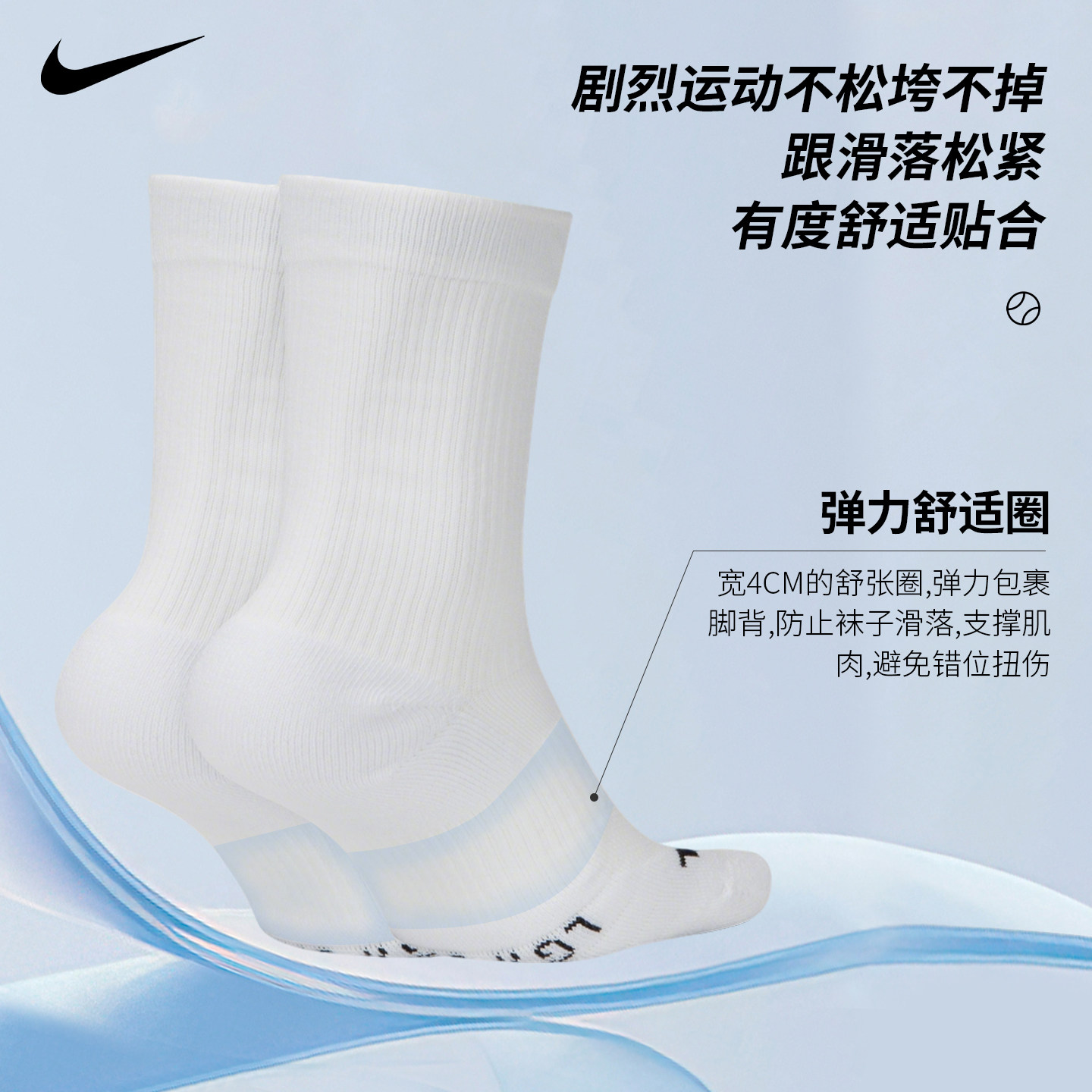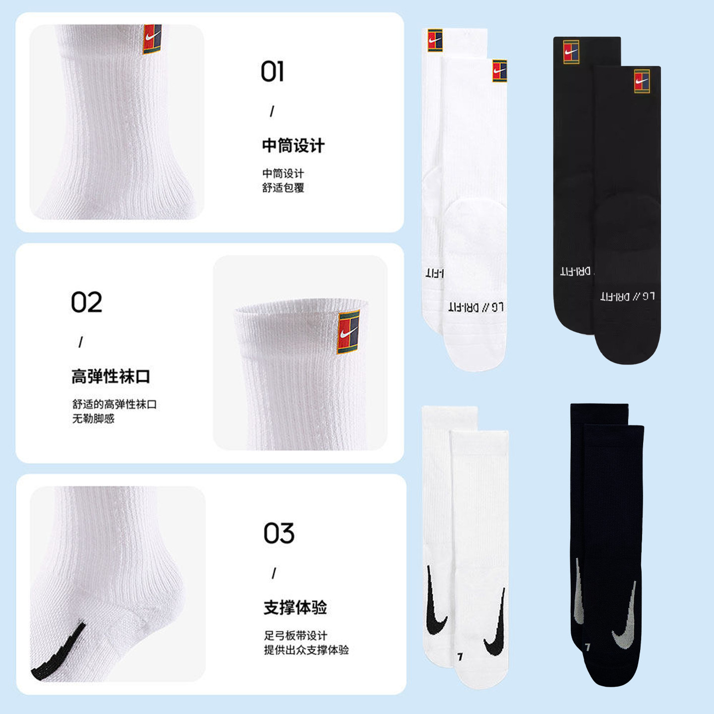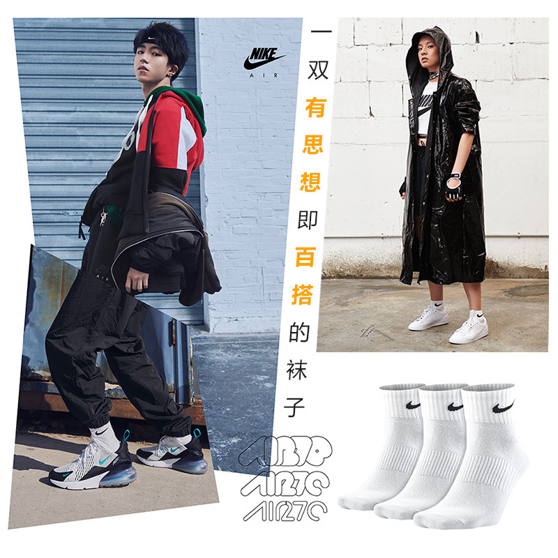 NIKE耐克网球运动袜子男女棉袜短中筒3双装运动袜 SK0118 SX7678