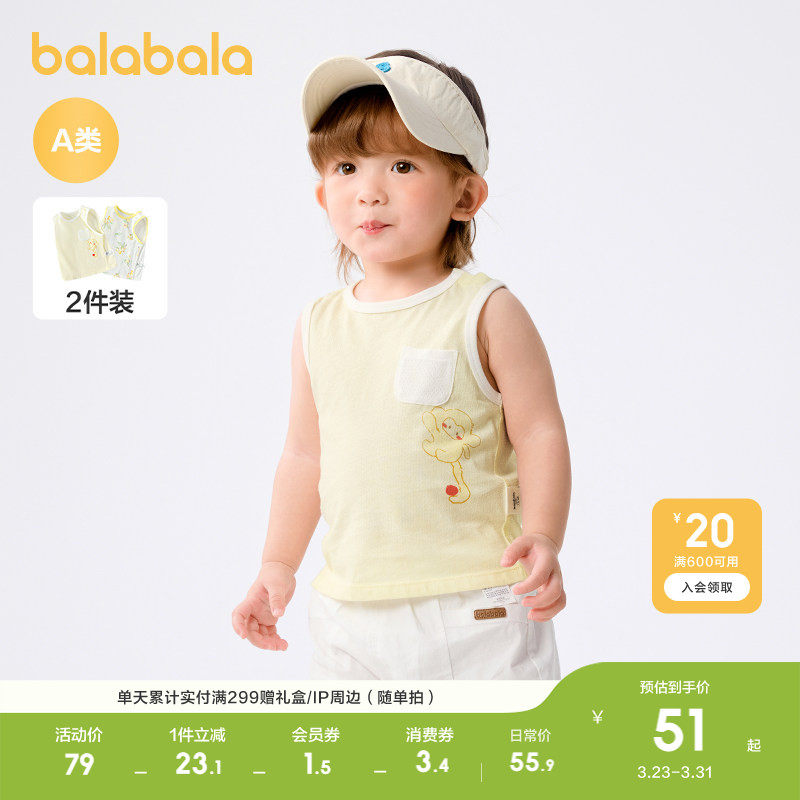 巴拉巴拉童装宝宝背心婴儿上衣男女童短袖T恤夏季薄款透气两件装