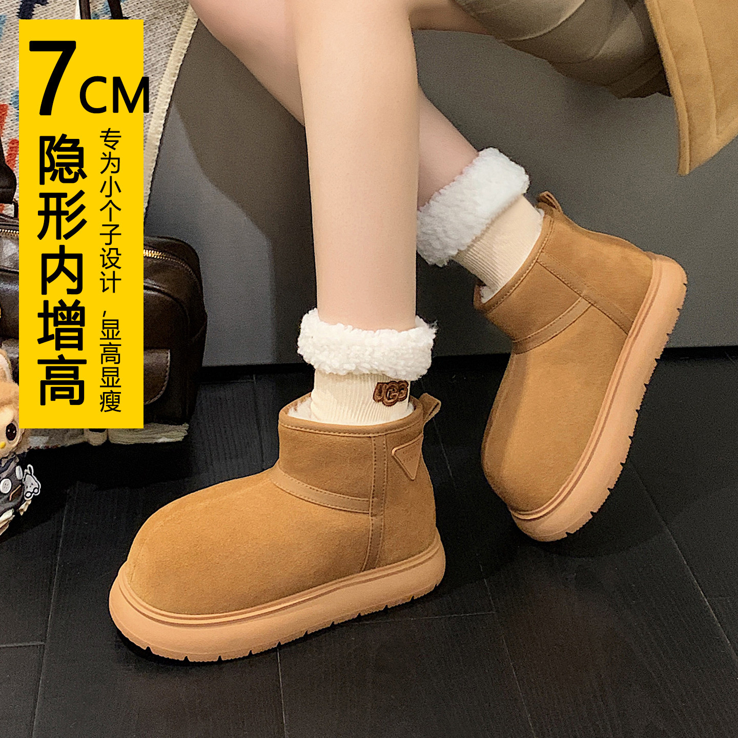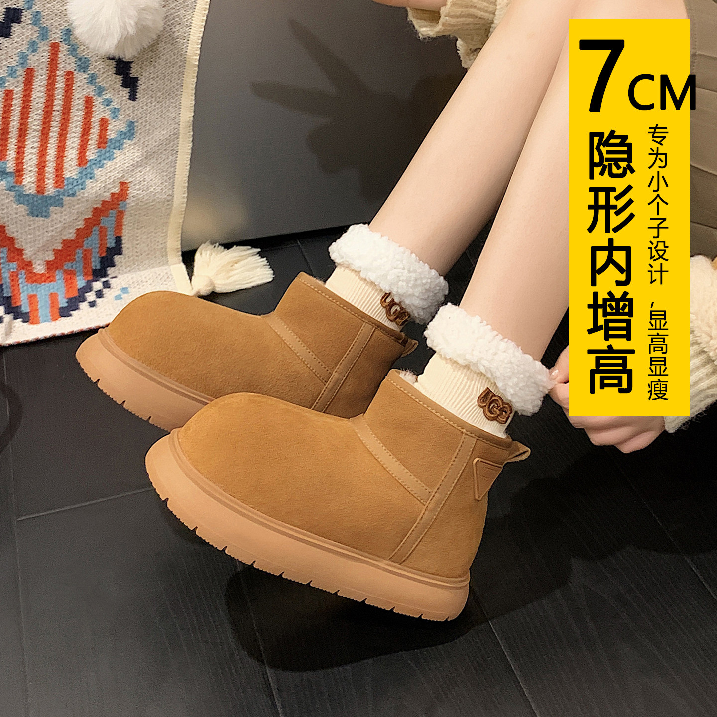 厚底防水防滑雪地靴女款2025新款冬季加绒加厚内增高雪地棉鞋女冬