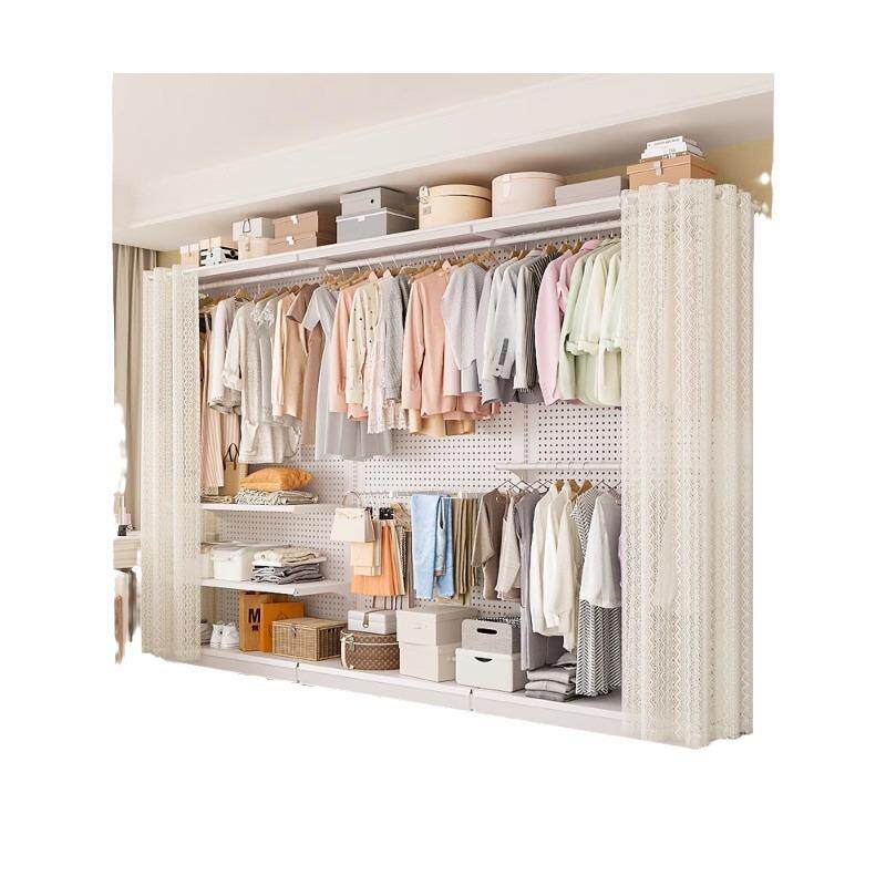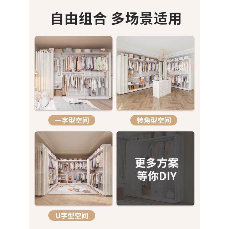 洞洞板衣柜金属挂衣架卧室步入式开放式防尘帘衣帽间组装架子收纳