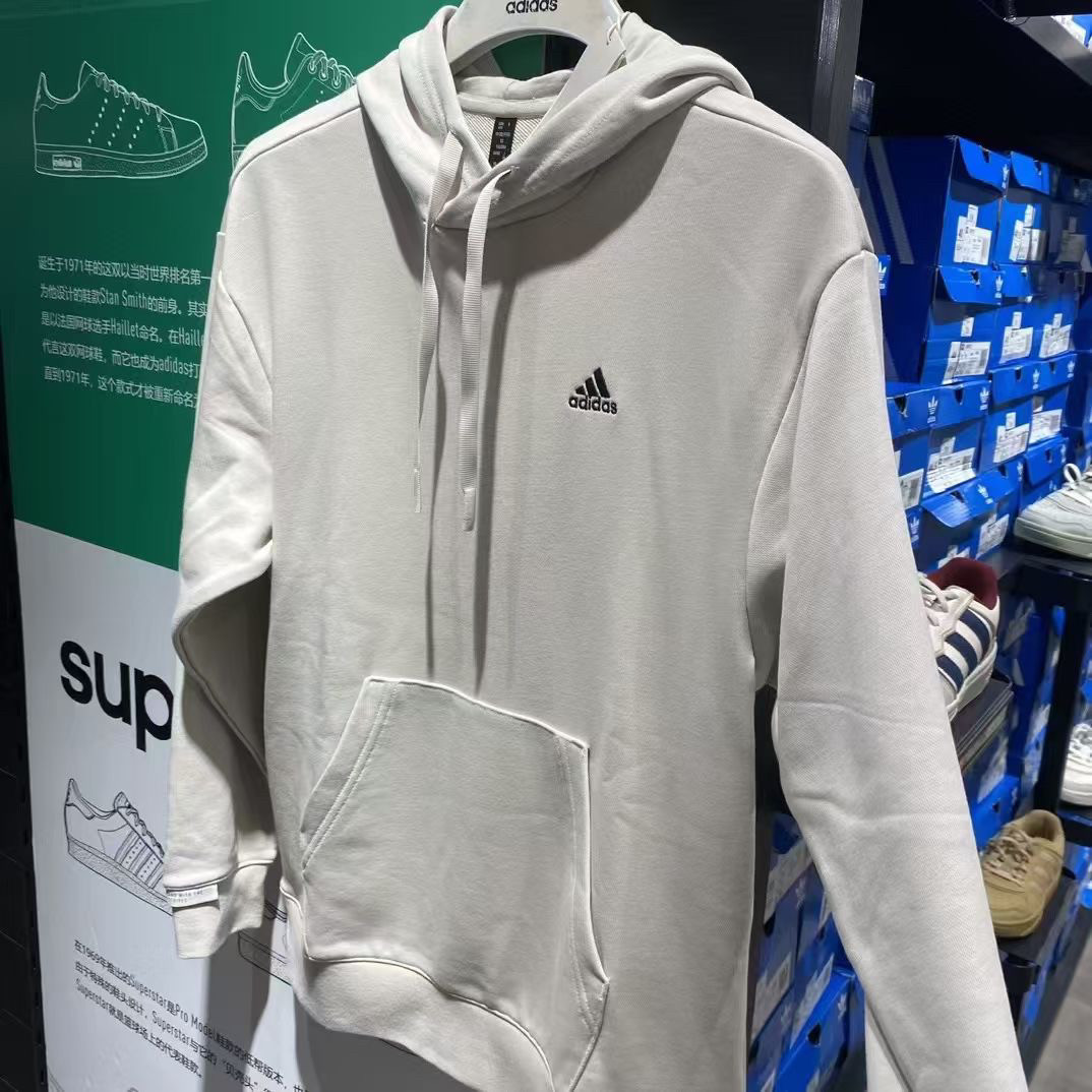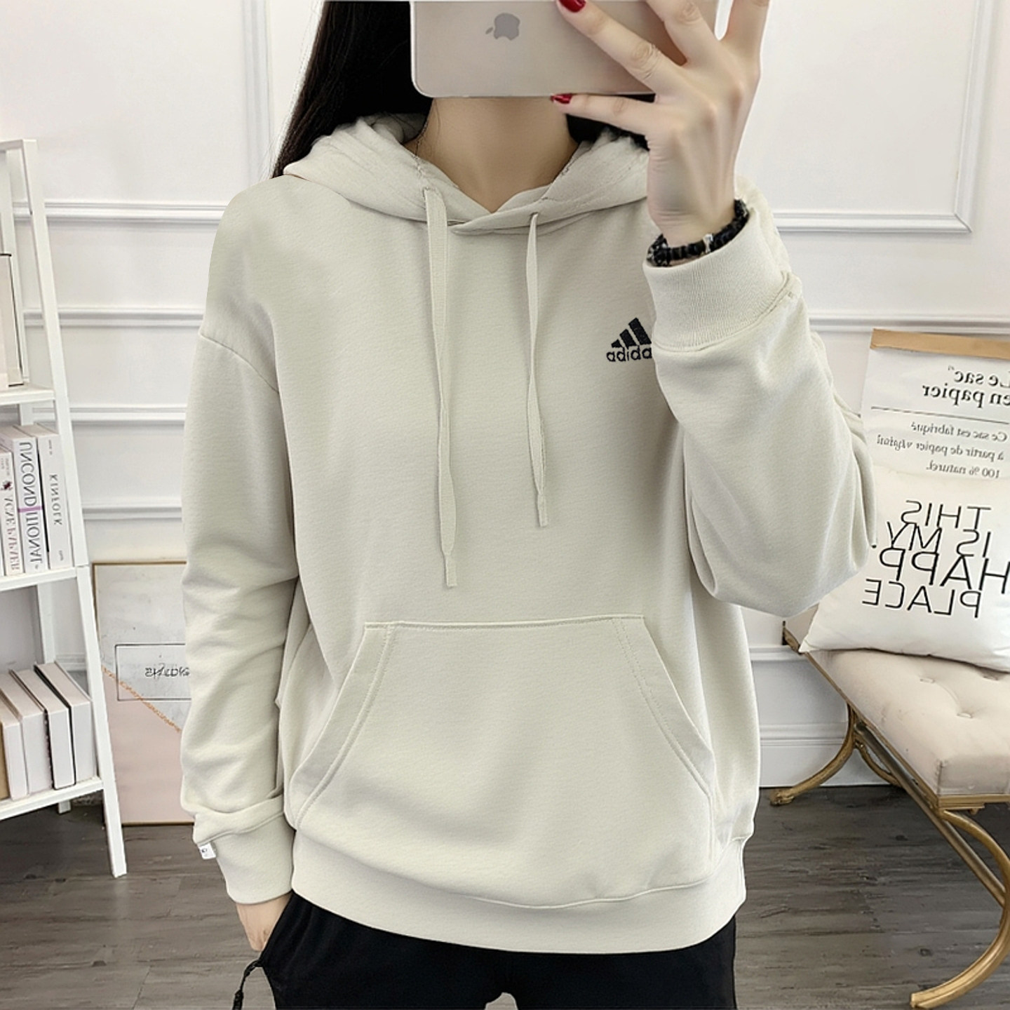 阿迪达斯纯色卫衣女秋季新款宽松大码运动服连帽针织上衣简约外套