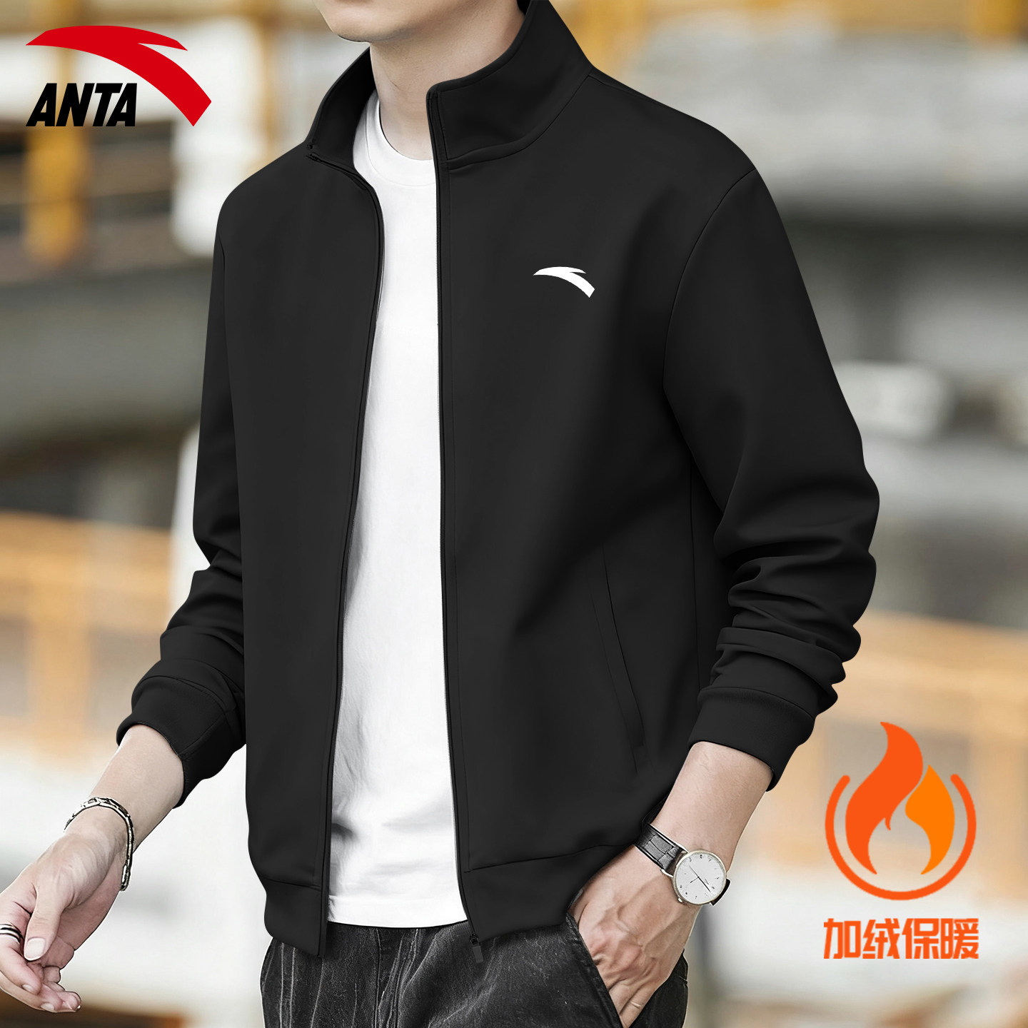 安踏夹克男款2026春季新款青少年立领防风保暖骑行服运动服外套
