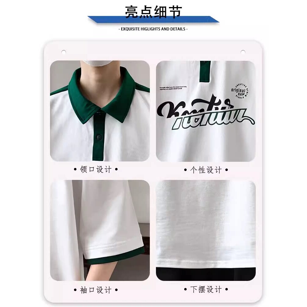 速干polo衫夏季有领短袖t恤男宽松上衣青少年字母印花半袖体恤男t
