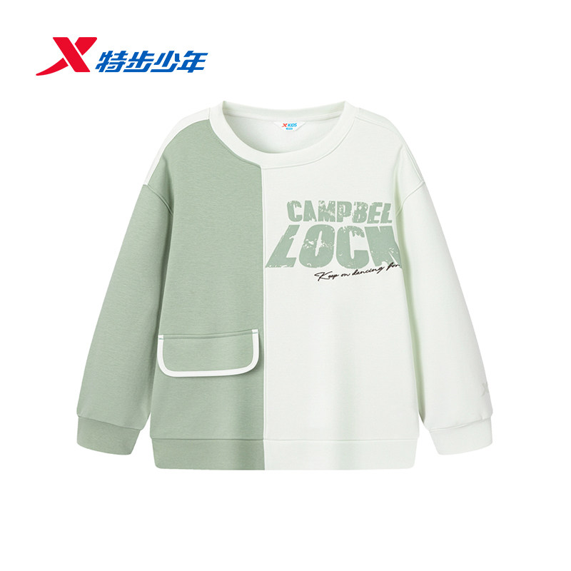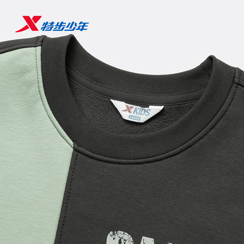 【商场同款】特步童装2026春季男中大童儿童运动拼接套头加绒卫衣