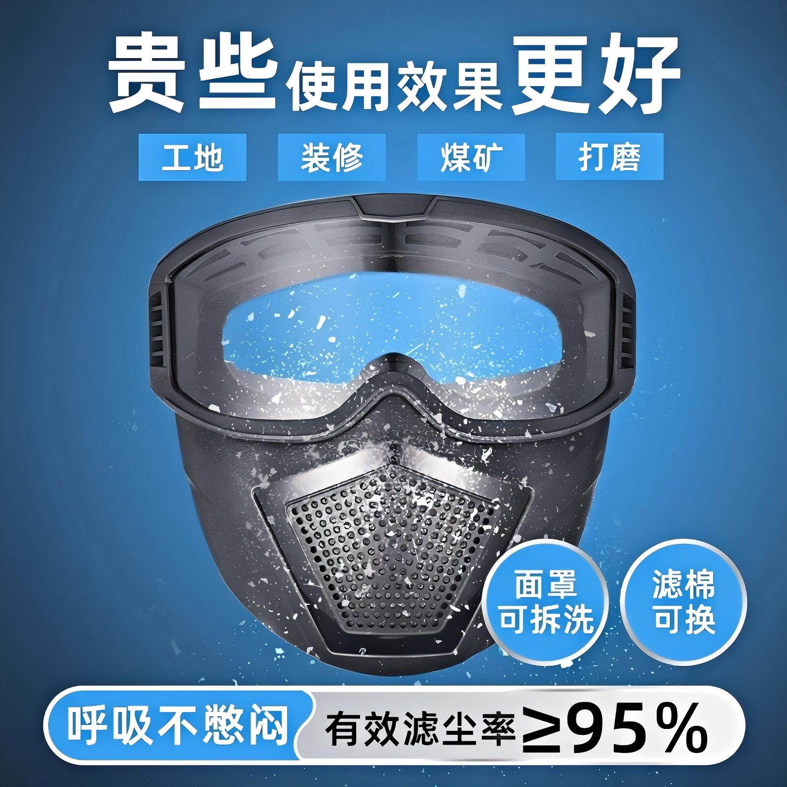 全脸防护面罩防尘防风沙装修工地打磨打农药喷漆防护全封闭面罩