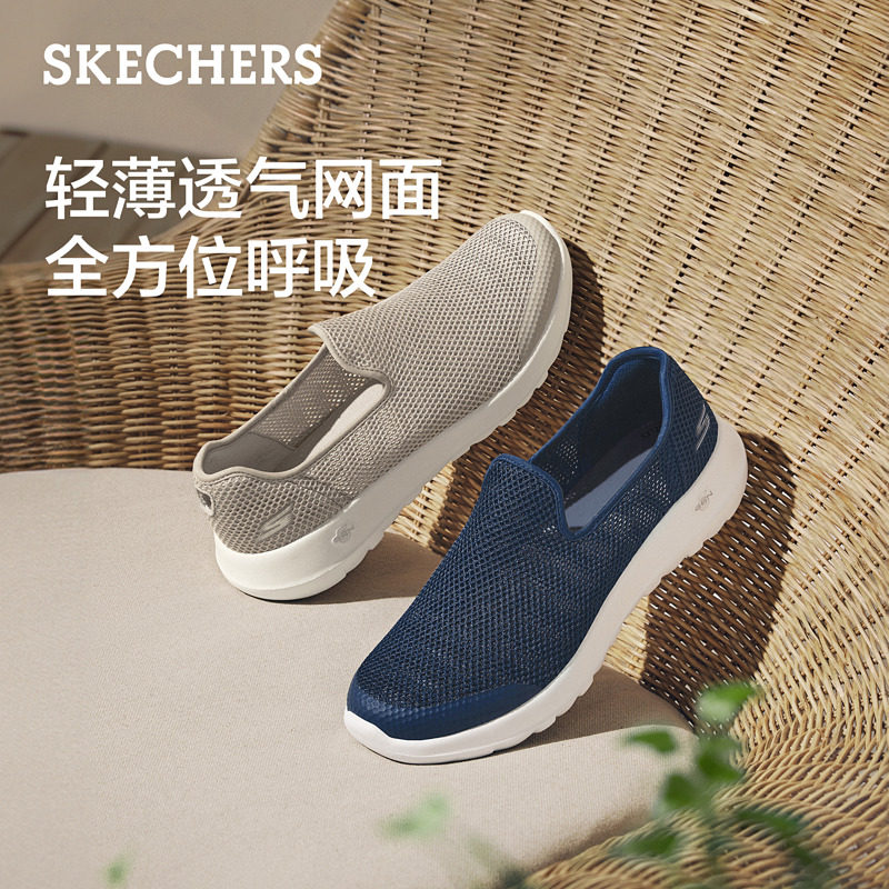 斯凯奇夏季男士一脚蹬健步鞋舒适爸爸鞋运动鞋透气休闲鞋216700