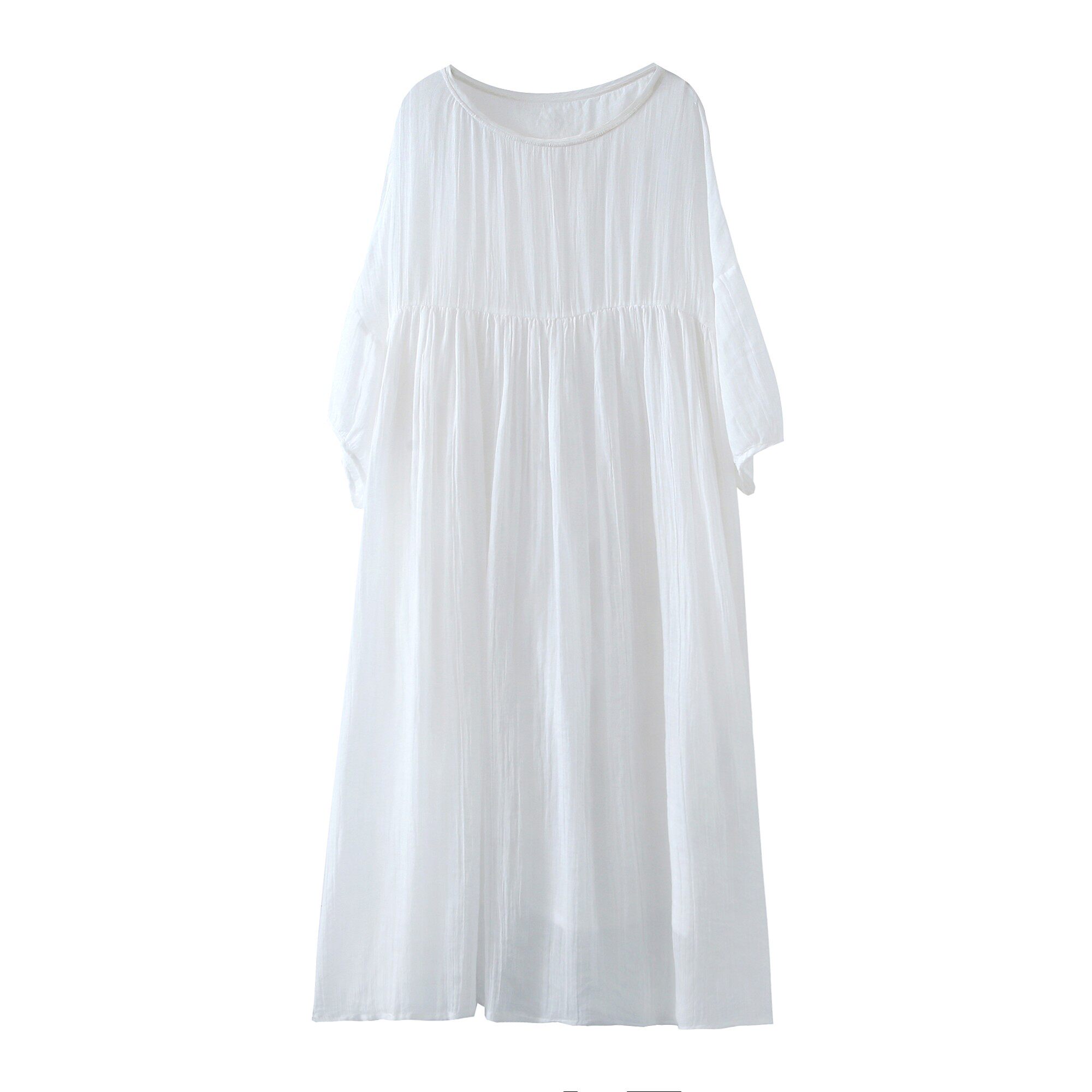三亚棉麻超仙白色宽松文艺苎麻连衣裙女高端气质仙气飘逸长裙裙子