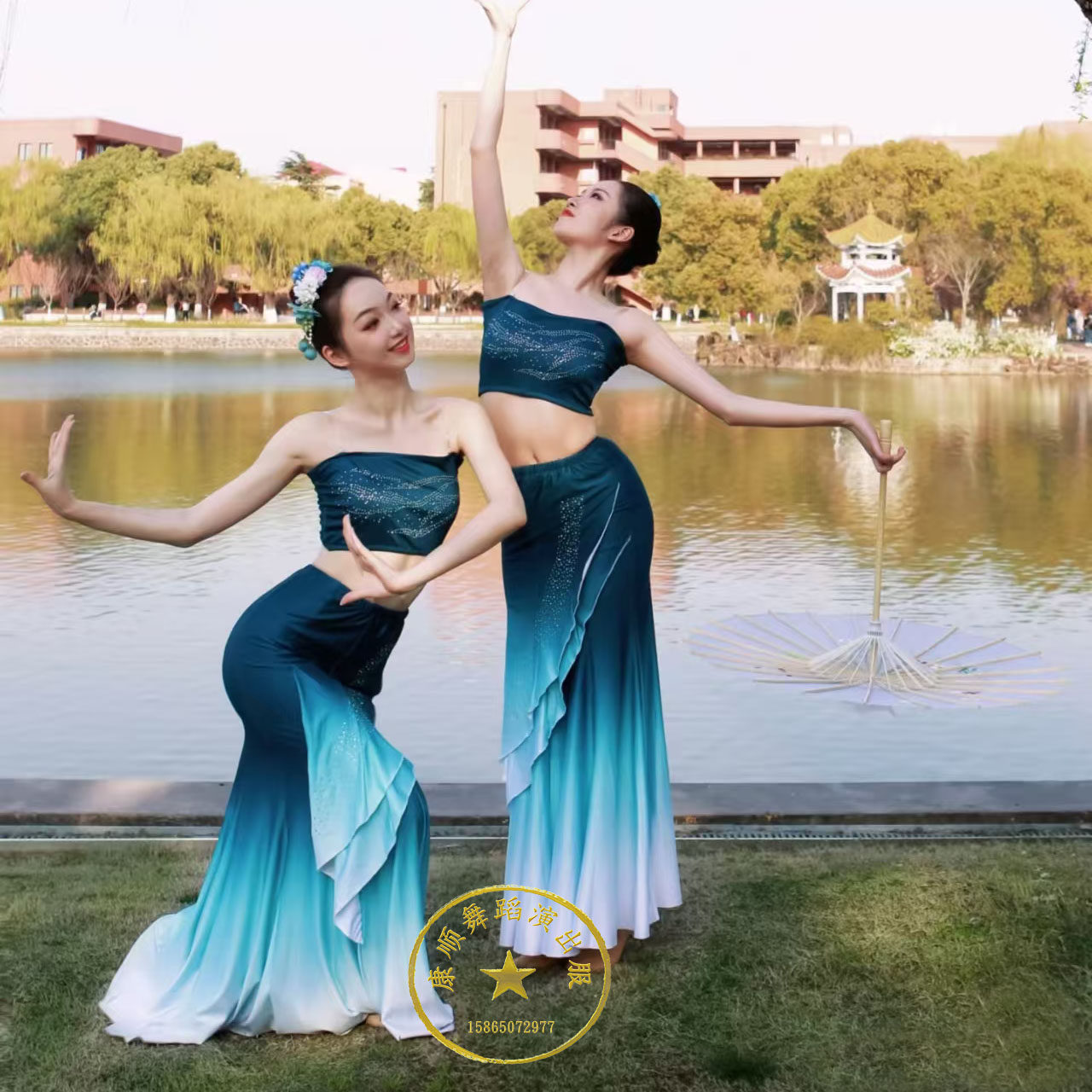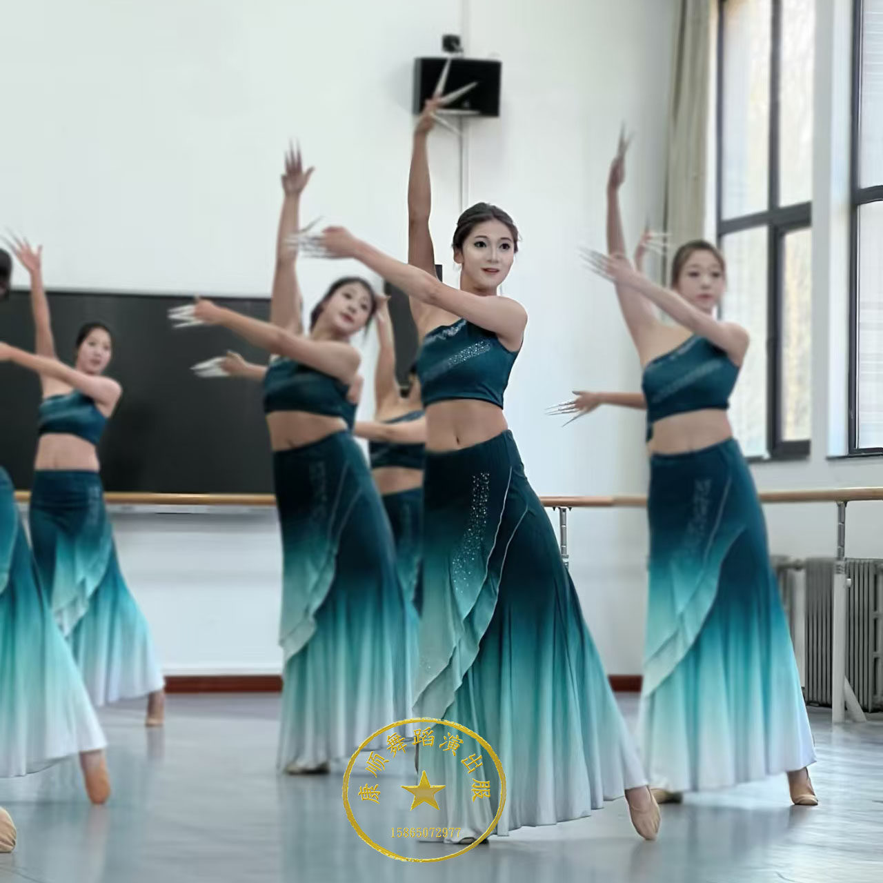 新款成人傣族舞蹈服装彩云之南孔雀舞演出服修身包臀练习艺考伞舞