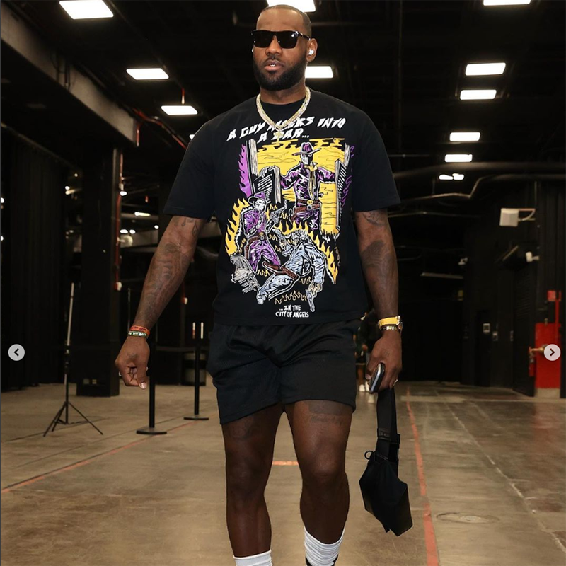 短袖Warren Lotas 联名NBA球队湖人勒布朗詹姆斯涂鸦高街篮球T恤