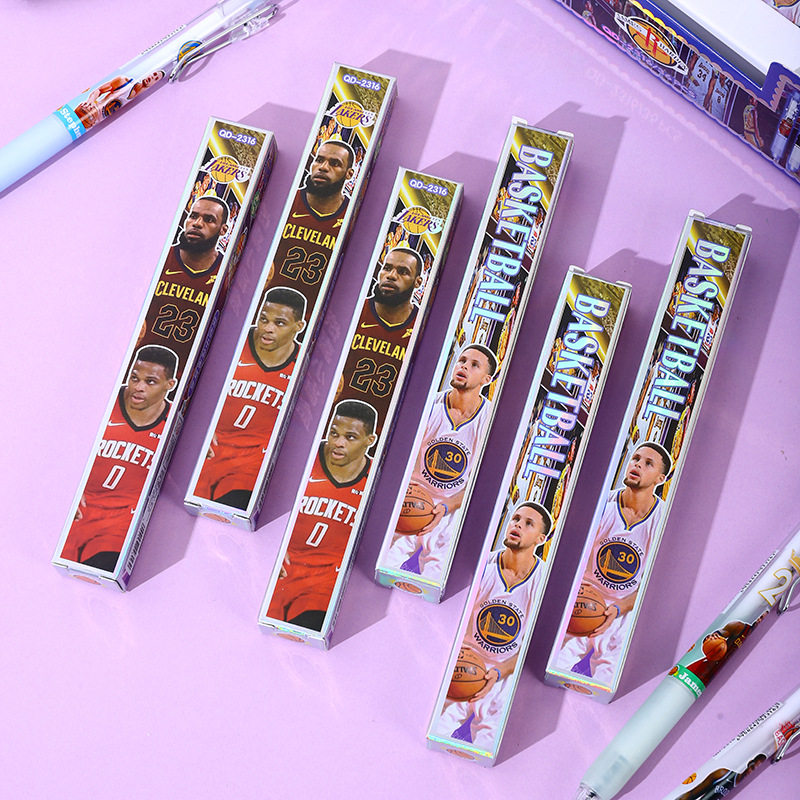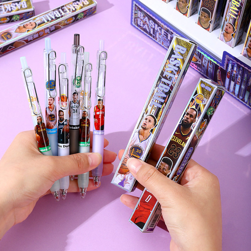 新款NBA球星盲盒中性笔灌篮篮球明星动漫笔高颜值黑色刷题按动笔6