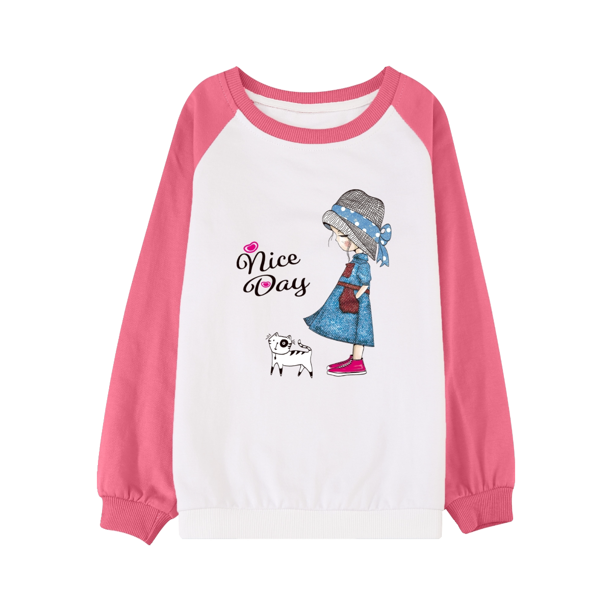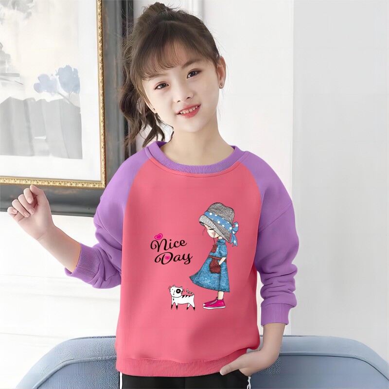 纯棉女童长袖卫衣薄款春装2025新款洋气大童女孩圆领宽松儿童上衣
