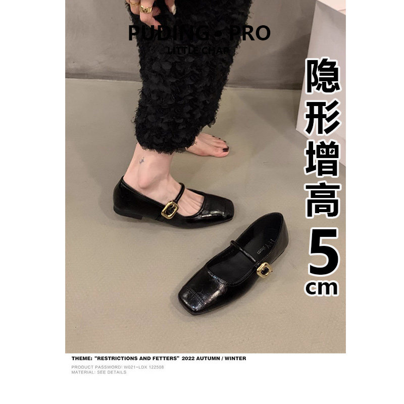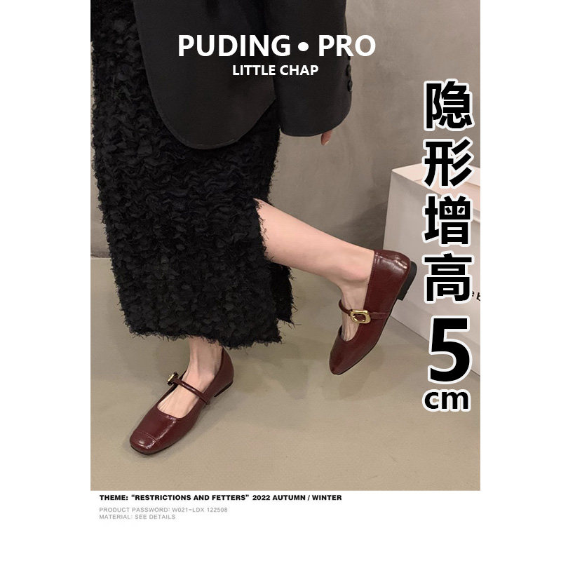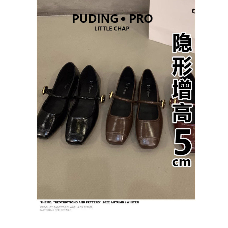小个子内增高5cm小皮鞋女2026新款春秋季豆豆鞋真皮玛丽珍单鞋子