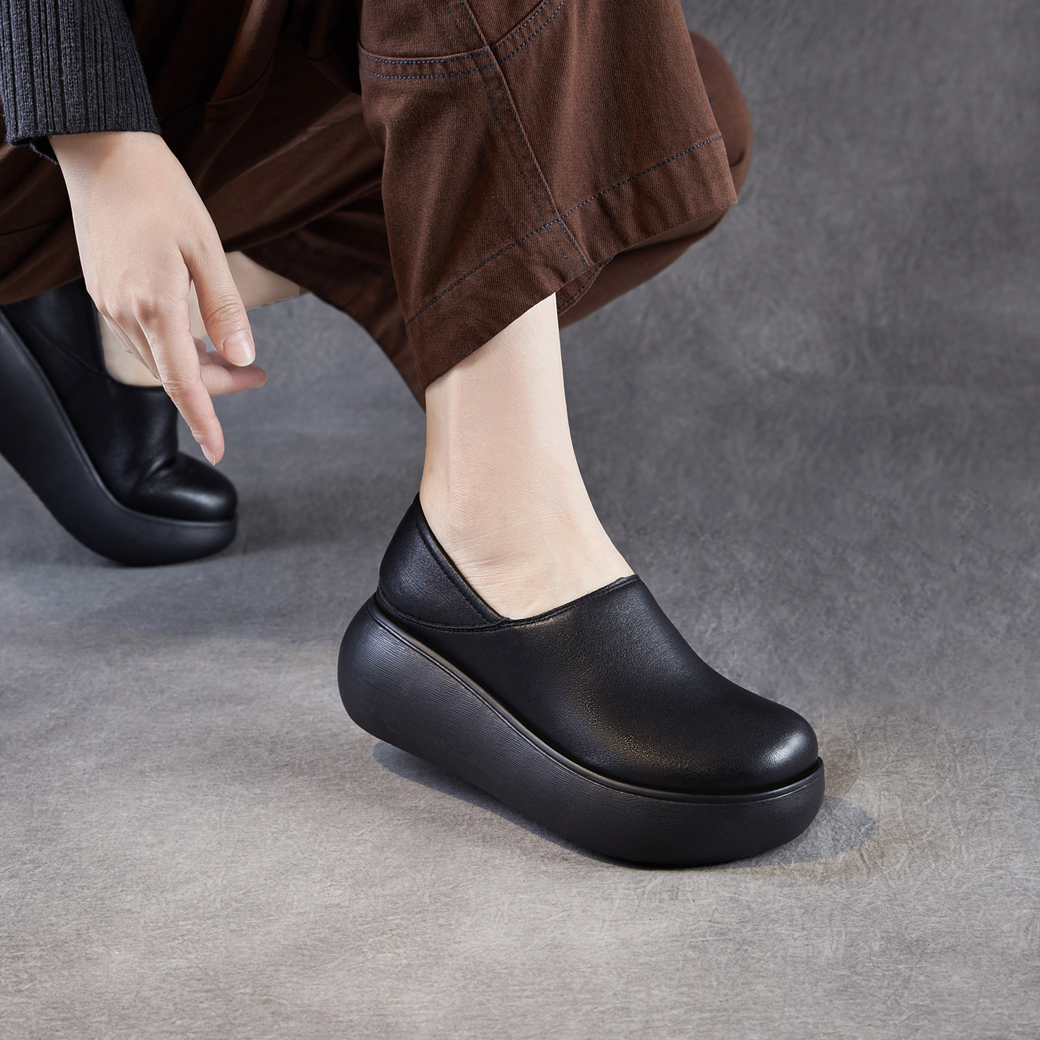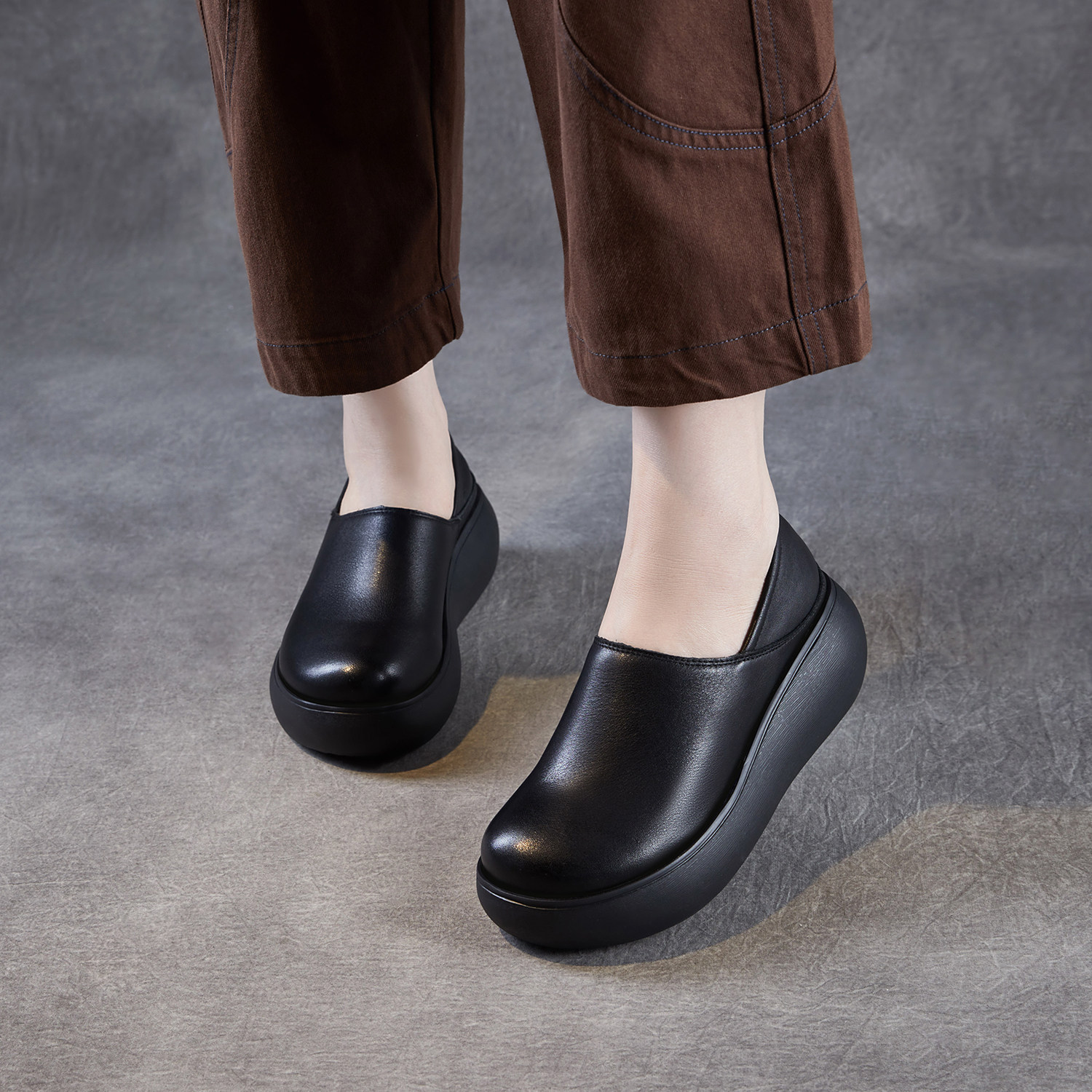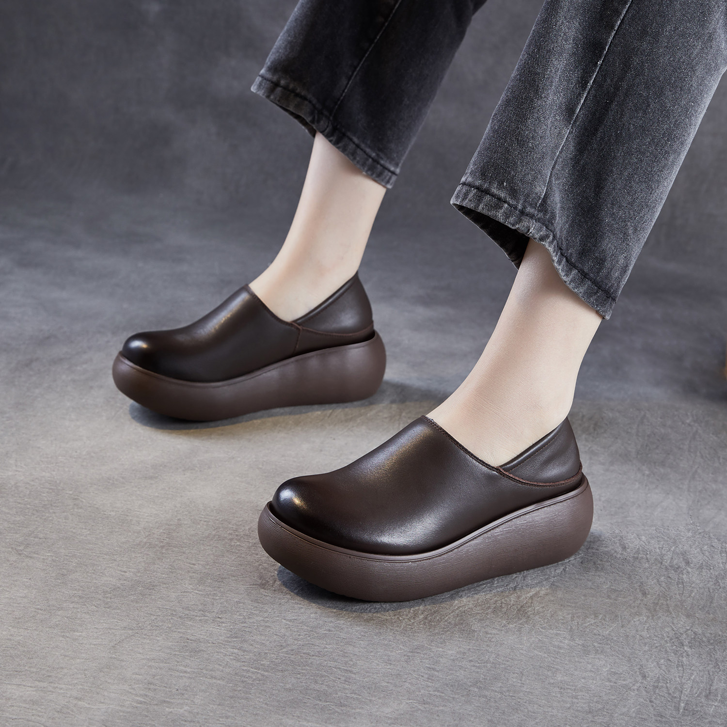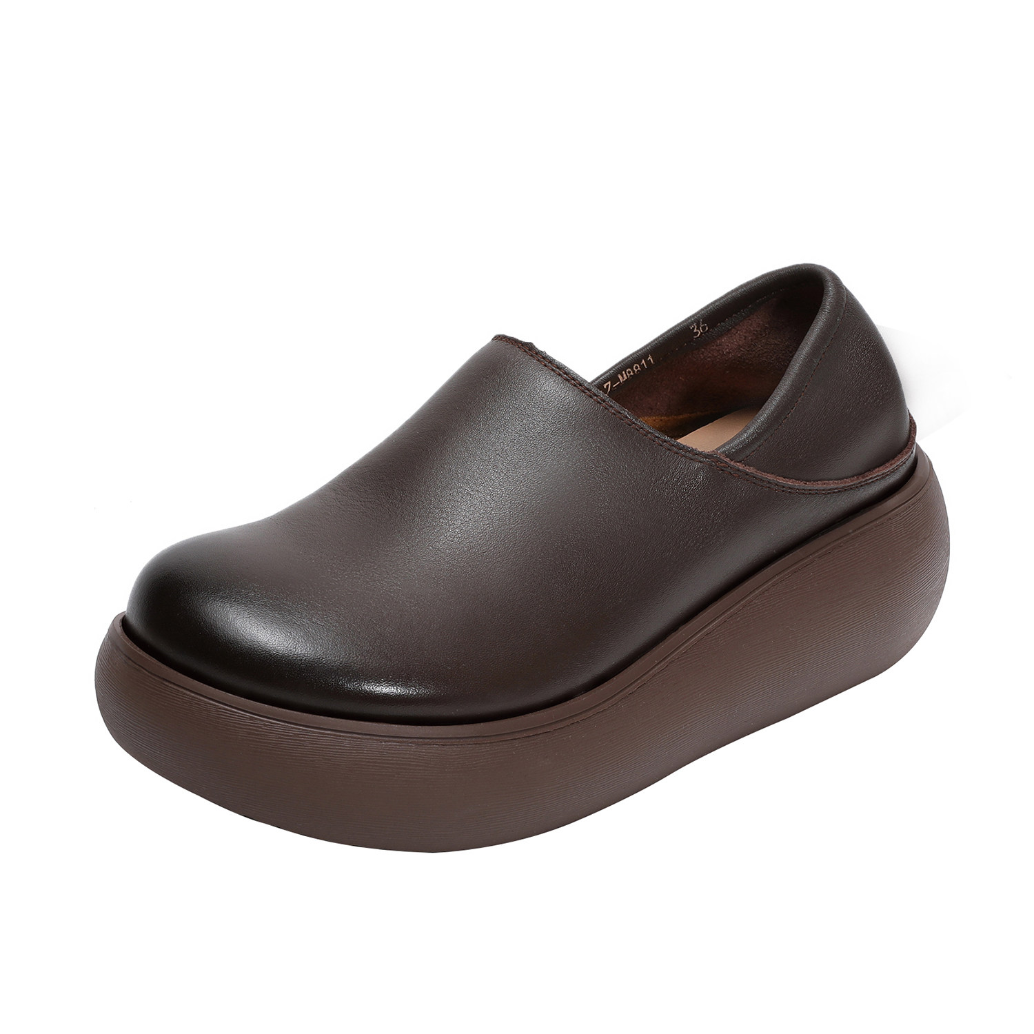 头层牛皮两穿厚底松糕乐福单鞋女2026春秋新款一脚蹬复古勃肯鞋子