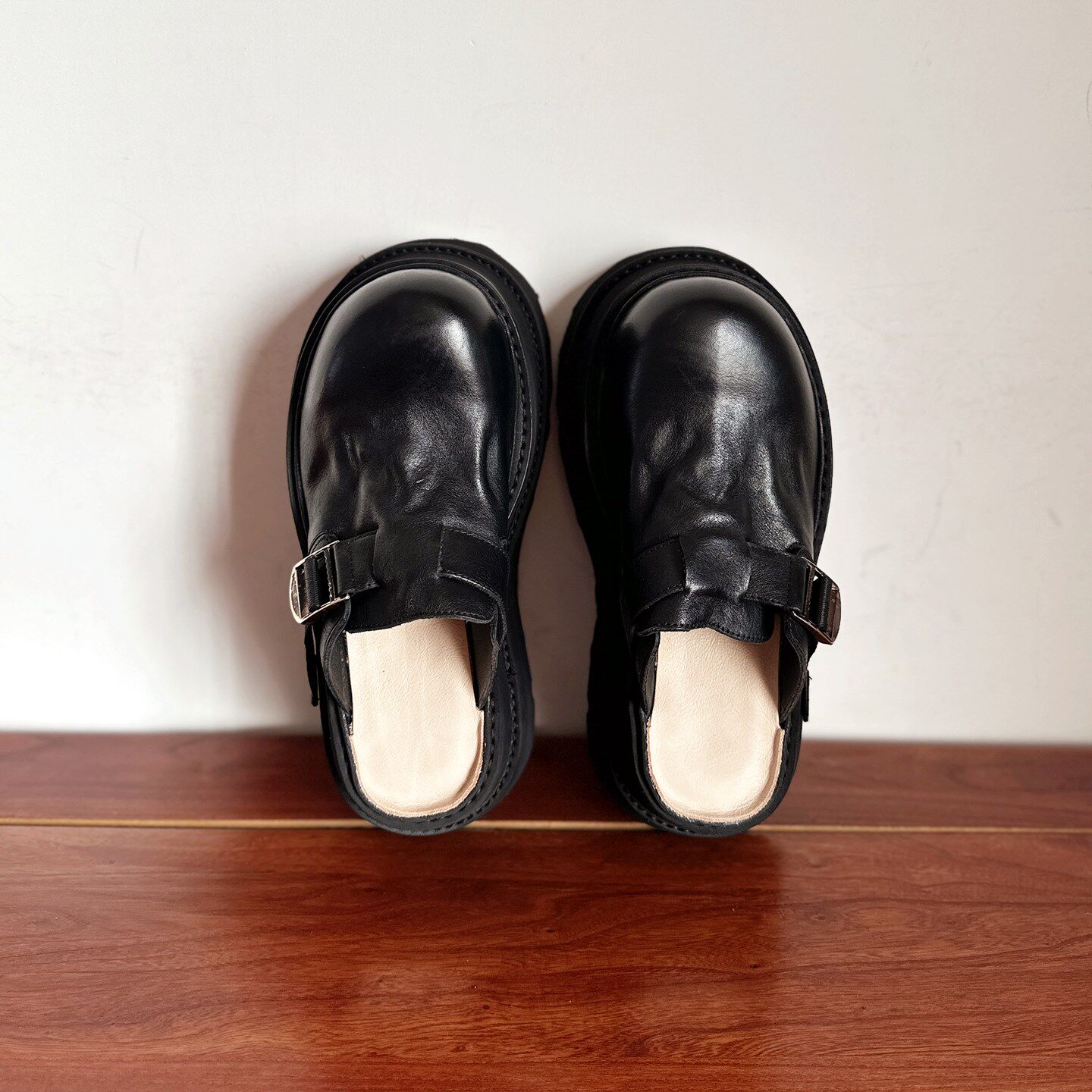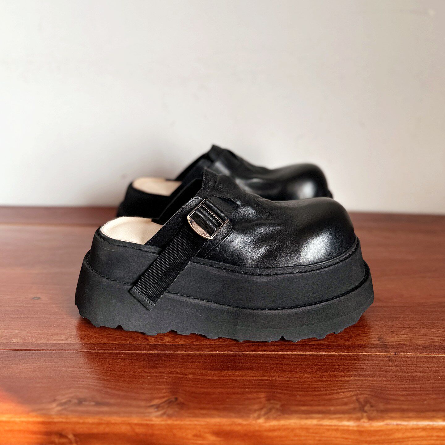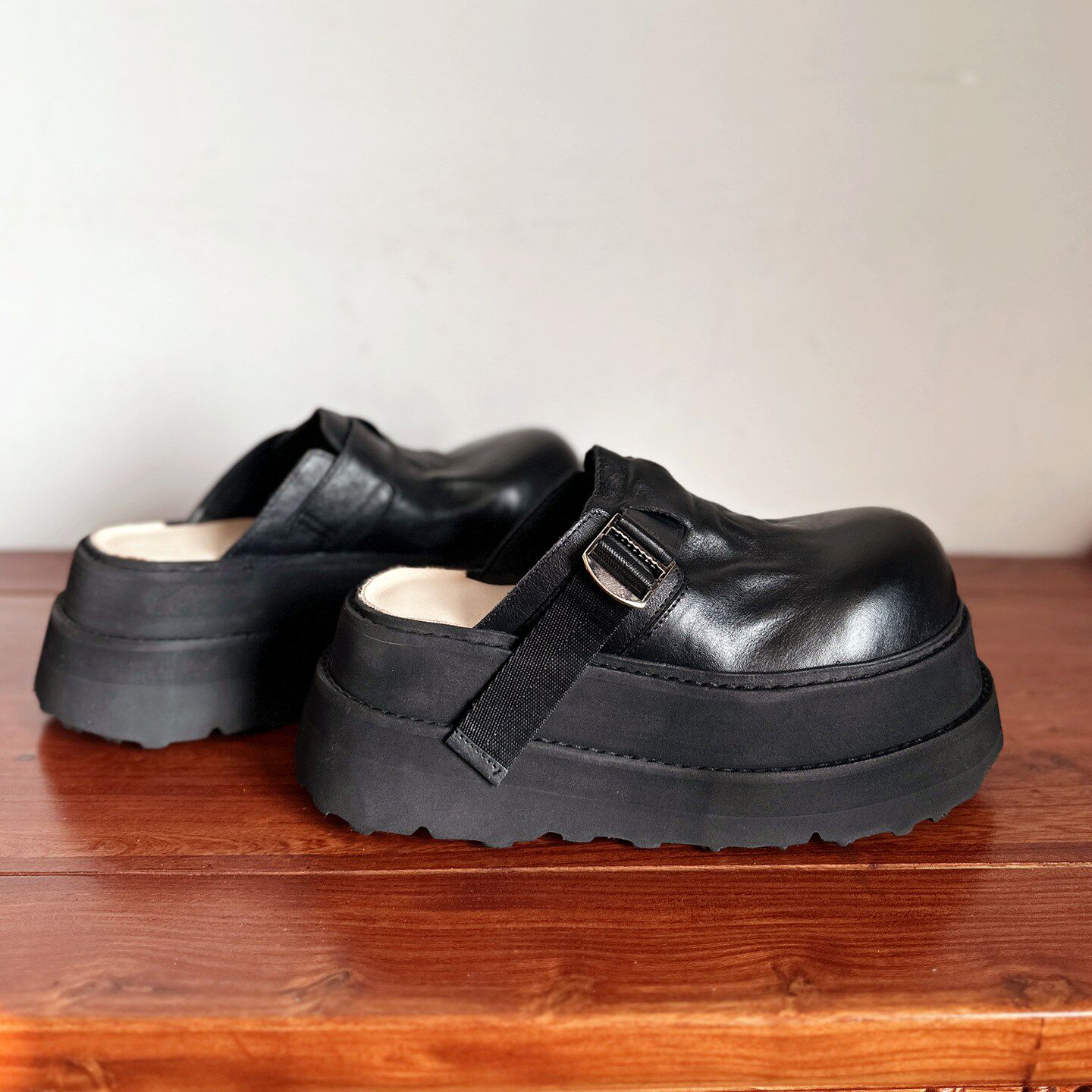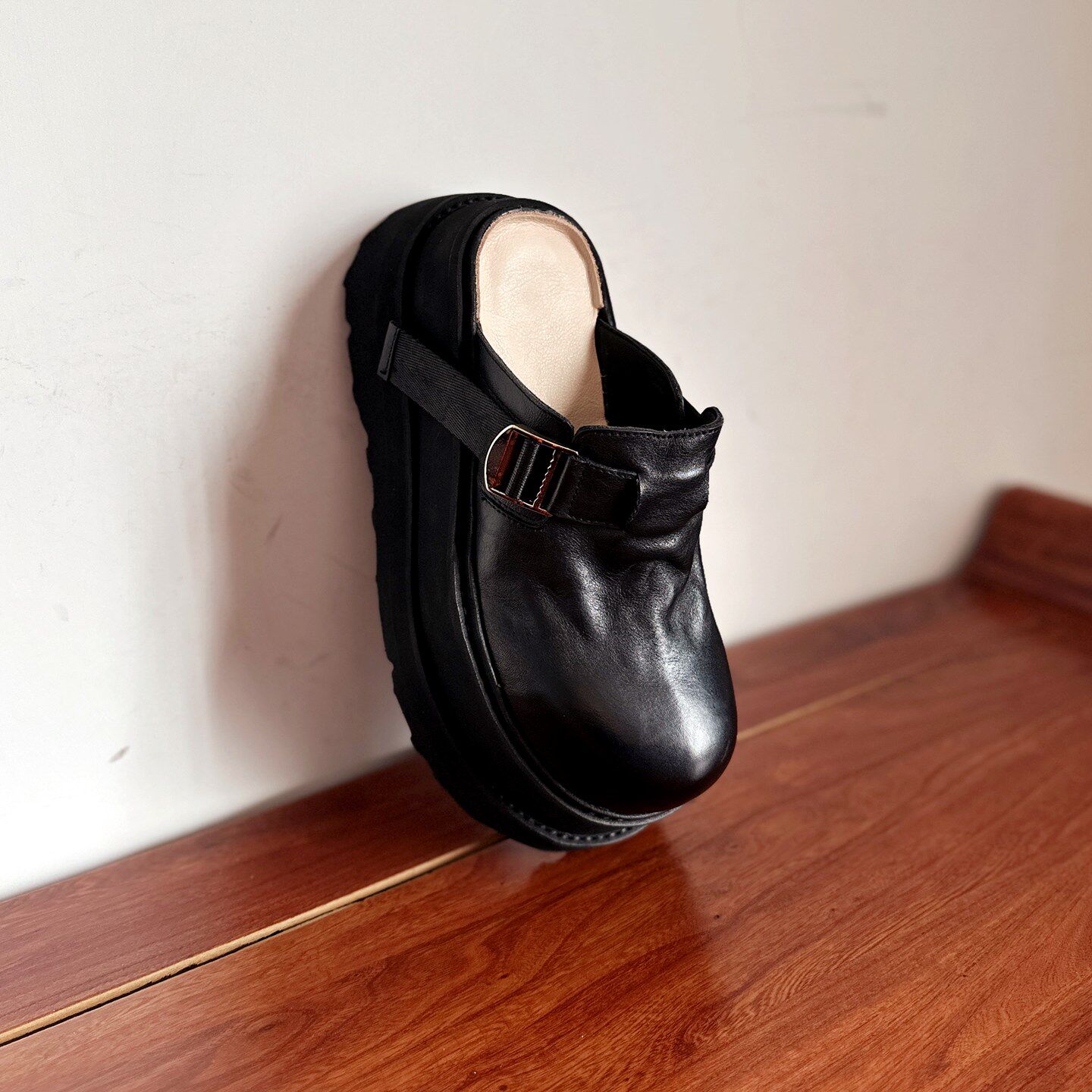 【烁掌柜】高端轻奢手工真皮女鞋头层水洗牛皮高跟厚底勃肯凉拖鞋