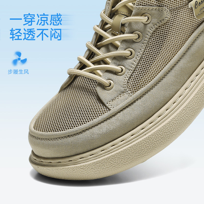 百丽男士户外休闲工装板鞋夏季新款厚底增高透气布鞋子A2137CM5