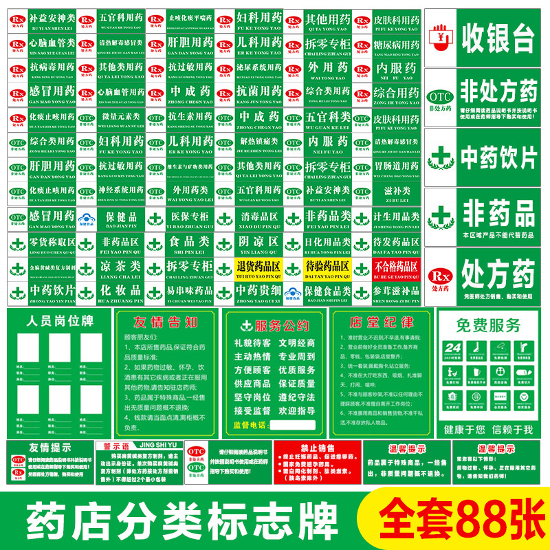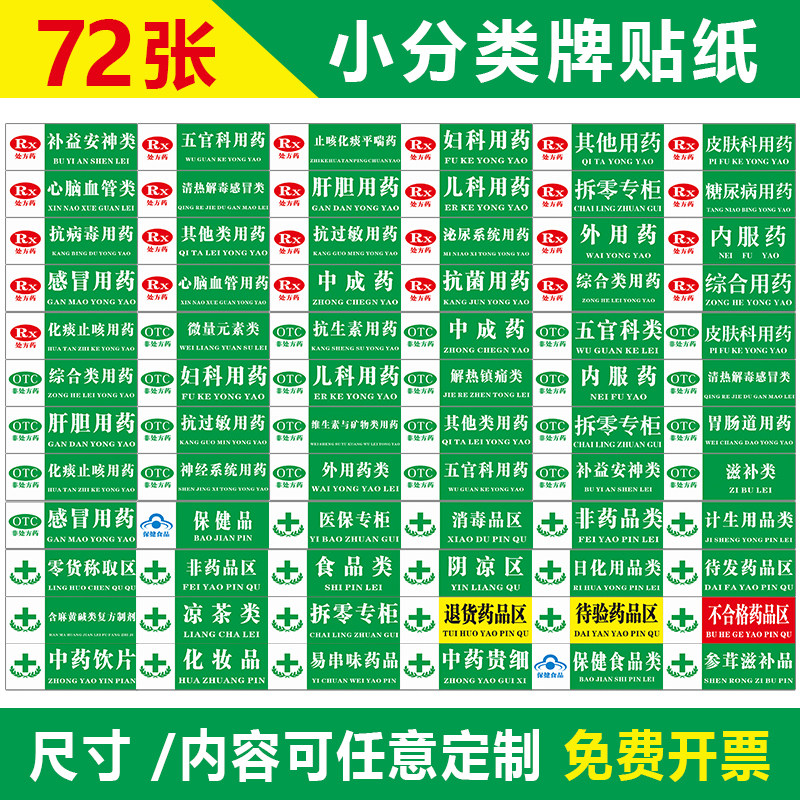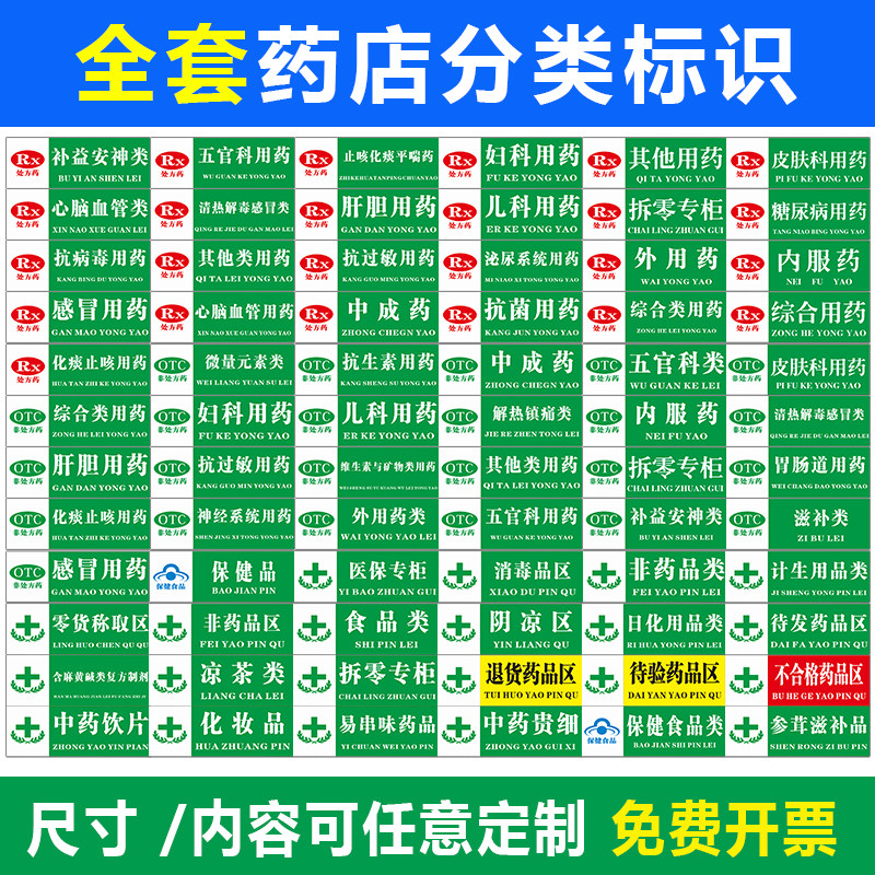 药店分类标识牌全套夹子药房标识牌书籍药品分类牌定制药品分类牌标签超市指示牌垃圾GSP认证标贴纸PVC书架贴