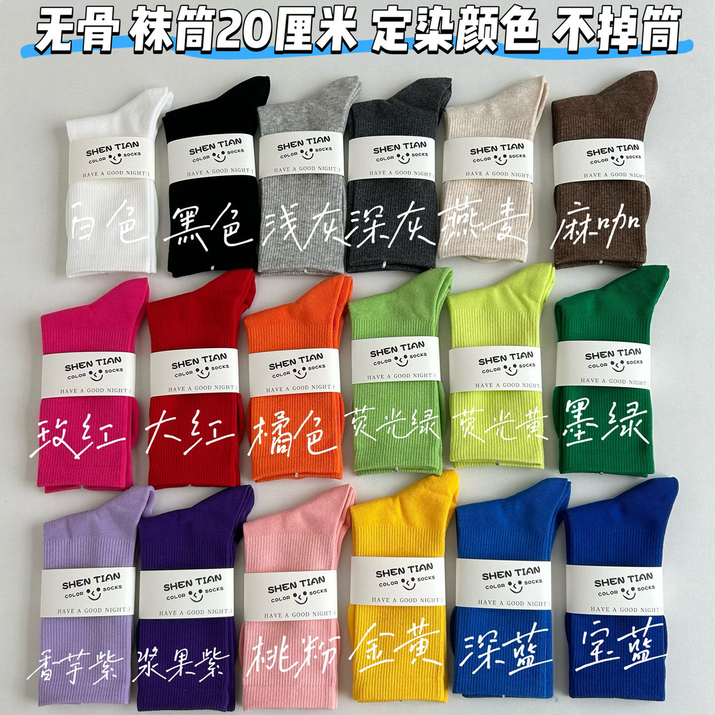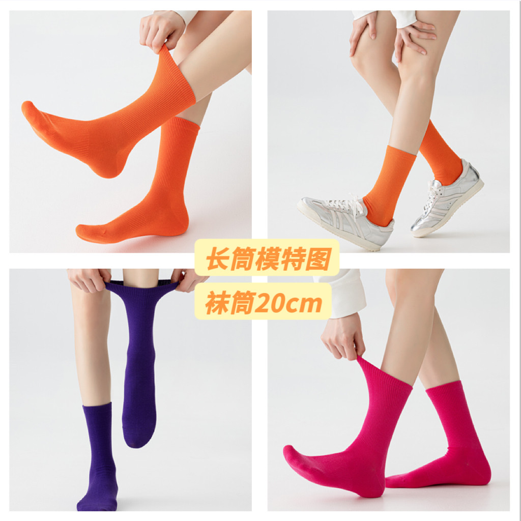 袜子男长筒春夏季彩色纯棉女袜荧光绿ins潮高腰多巴胺搭配瑜伽裤