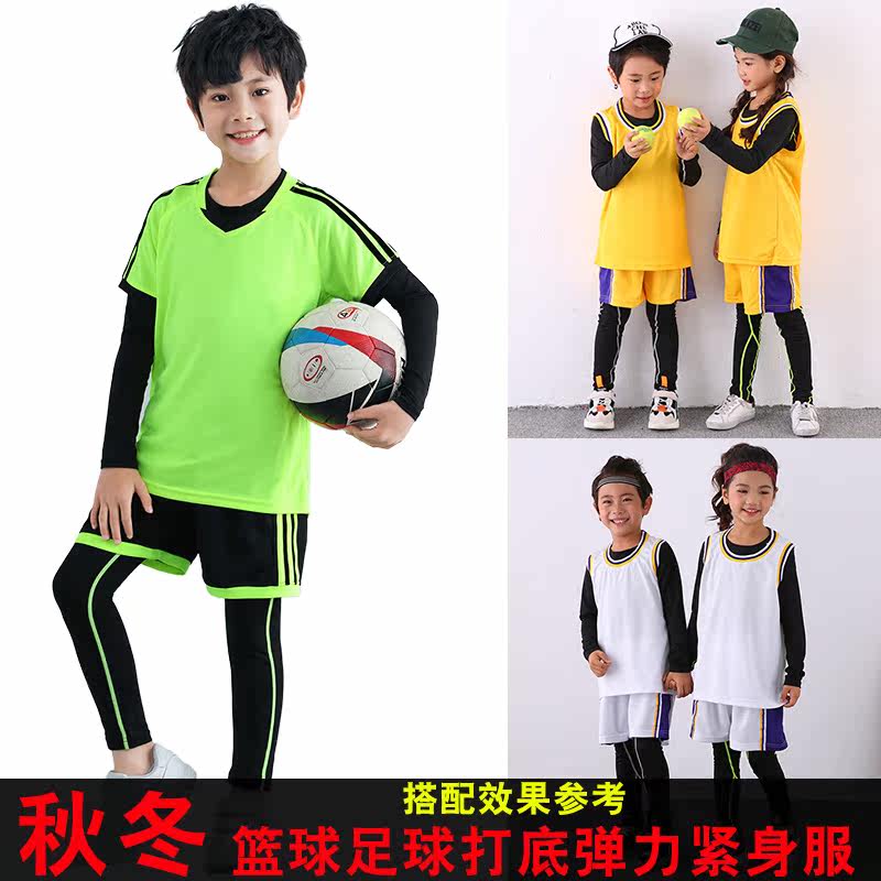 秋冬儿童篮球服紧身衣训练服内搭男童长袖女童打底足球服套装秋季