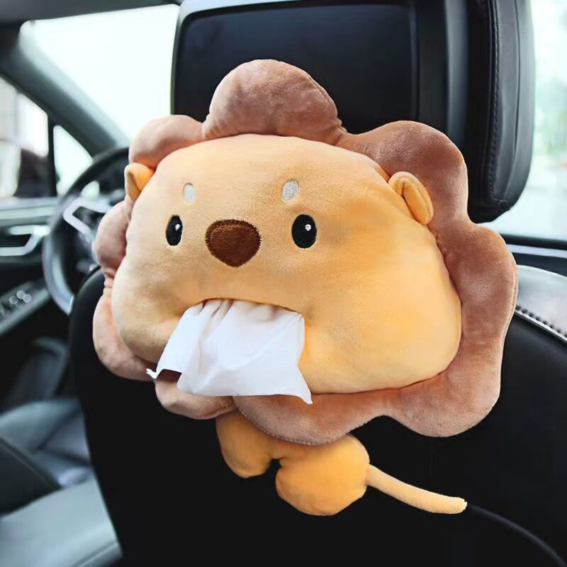 车载纸巾盒汽车用扶手箱抽纸盒车内装饰挂式创意可爱卡通毛绒纸抽