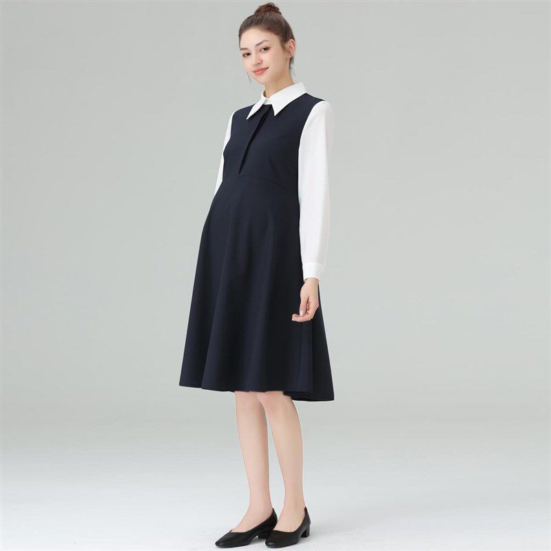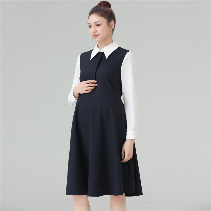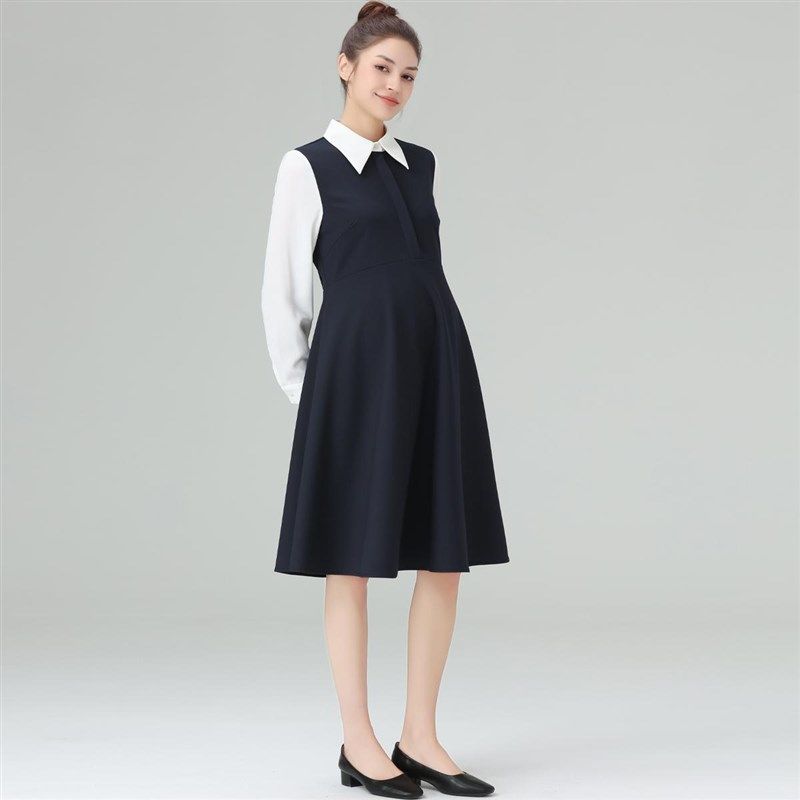 孕妇装春秋季长款孕妇连衣裙x女职业面试上班孕期长袖工装孕期裙