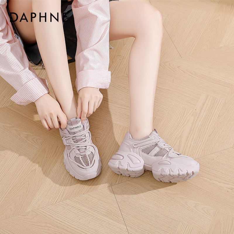 达芙妮老爹鞋子女款2024新款夏季网面透气薄款女鞋厚底休闲运动鞋