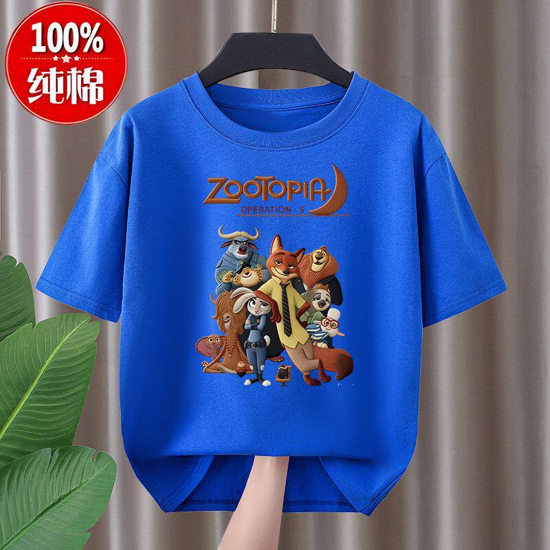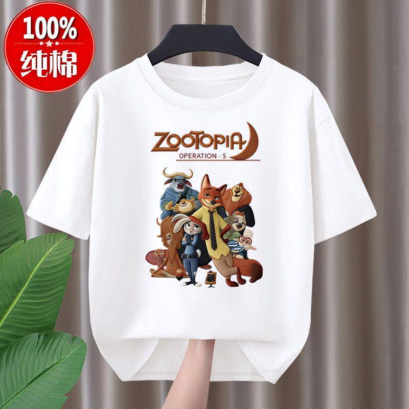 男女童疯狂动物城100%纯棉短袖T恤儿童朱迪尼克联名半袖夏季上衣