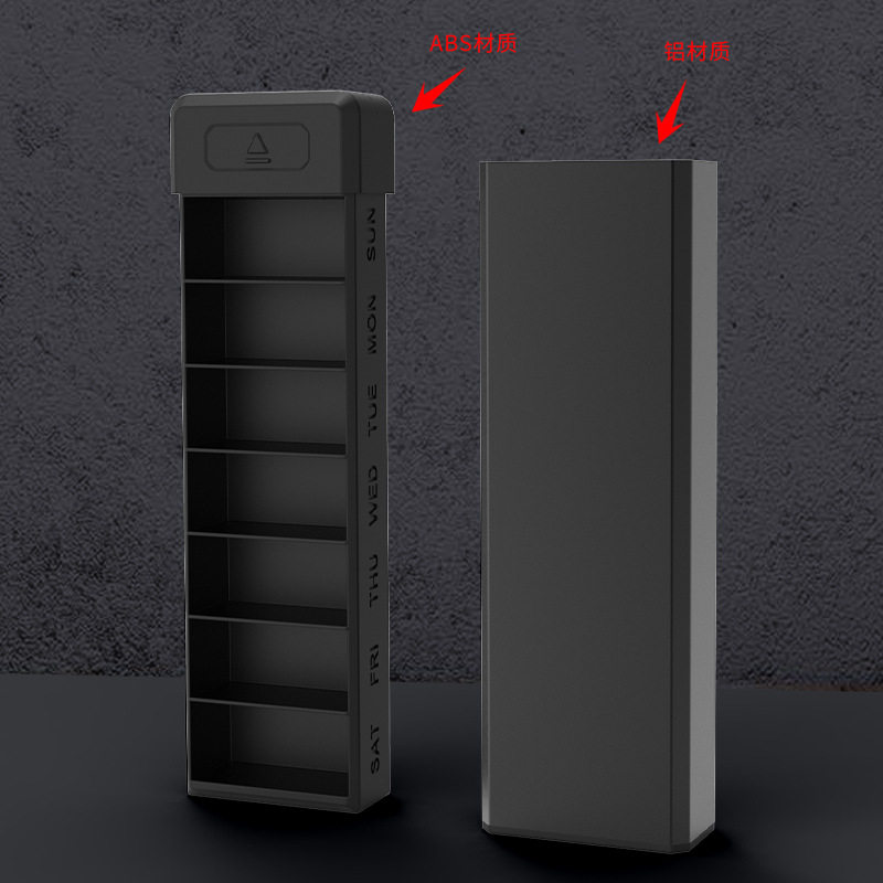 便携式铝合金磁吸密封分装药盒一周7天装药的盒子随身避光药丸盒