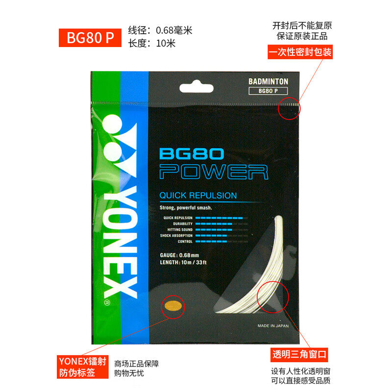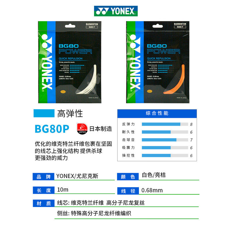 YONEX尤尼克斯BG80/BG80P/bg65ti羽毛球拍线耐打高弹0.68mm线进攻