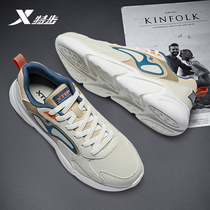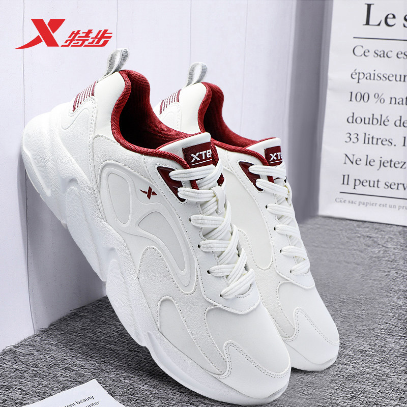 特步男鞋2026新款春季休闲鞋子男款皮面防水轻便跑步鞋白色运动鞋